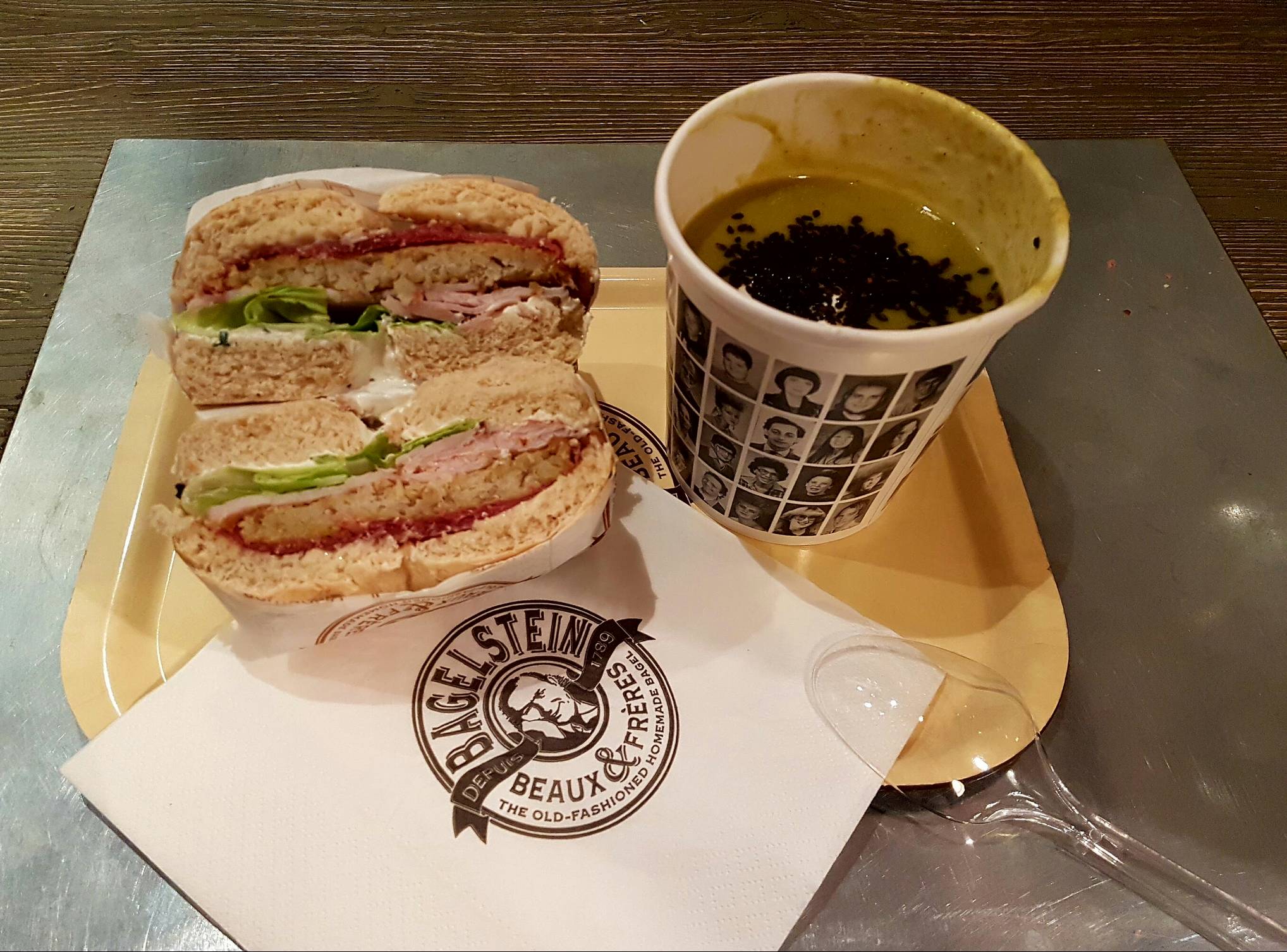 L’enseigne existe encore et se développe, j’y vais de temps en temps. J’y suis allé ce midi, j’ai pris une petite soupe japonaise sympa et un bagel Gaston le tout pour 8.90 €. J’avais encore faim alors j’ai pris un petit dessert à la framboise à 3€20. Pas grand chose à signaler, à part que la caissière était pas très sympa, le contraire des serveurs, et que l’endroit était sale : tables pas nettoyées… Sinon, c’était bon !