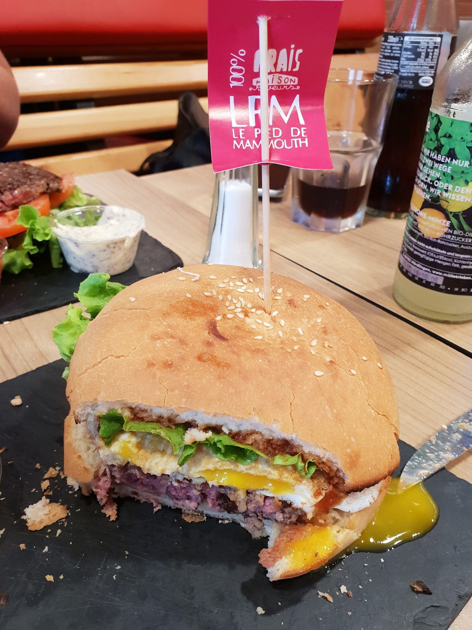Un endroit où manger des burgers bons, originaux et “à la Française” à Strasbourg, vous connaissez? Et bah, vous devriez vous y mettre… Direction Le Pied de Mammouth, qui a ouvert il y a quelques semaines dans la rue Sellenick presque en face de l’ancien Palais des fêtes ( qui vient d’être racheté par le groupe FHB qui compte y faire une brasserie pour info).