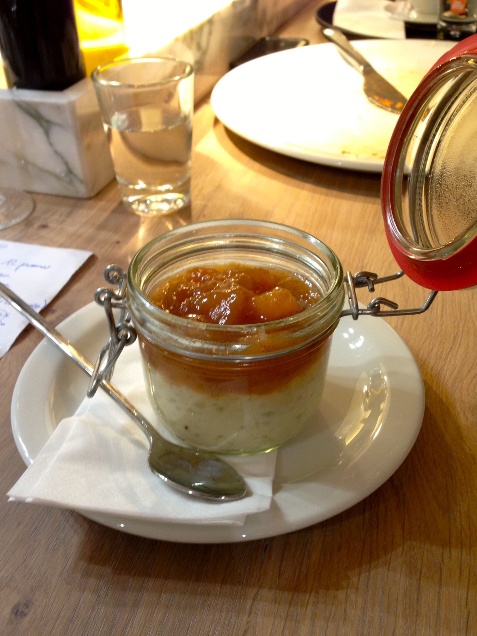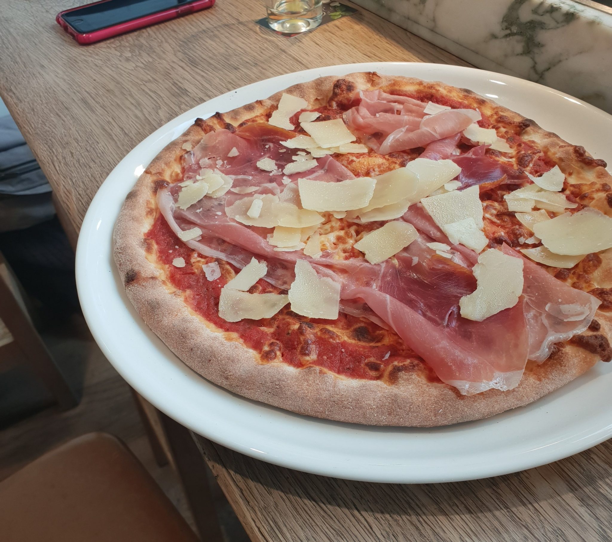 La décoration est vraiment sympa : on a même le droit à du basilic et du romarin frais sur chaque table. C’est lumineux, propre et calme ( le midi en pleine “rush hour” ça doit pas être le même délire… Mais bon, là, c’était assez sympa comme ambiance). Niveau nourriture, c’est correct, et bien assaisonné… Par contre, attention à certaines pizzas très épicées ! Pour ma part, j’ai pris une pizza assez classique au jambon cru, mais par contre mon dessert : riz au lait avec coulis de pommes façon tatin à la cannelle était très bon.
