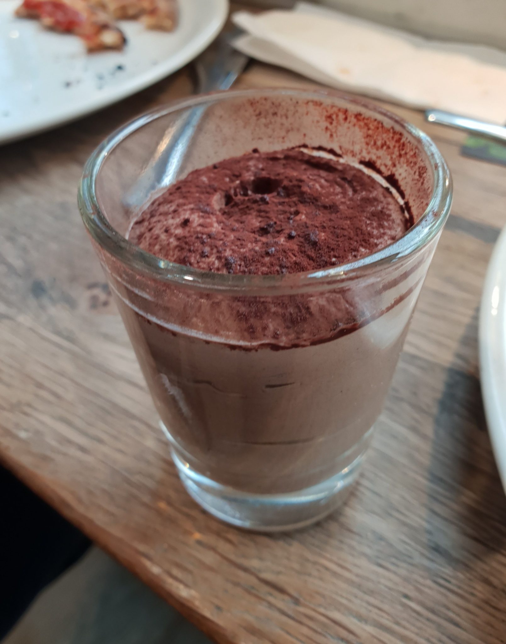 Côté cuisine, je n’ai dégusté qu’une pizza qui était goûteuse avec des produits frais et de bonne qualité et une pâte croustillante. Pas de carafe d’eau, assez regrettable mais possibilité eau au verre gratuitement. Le vin au verre est un peu cher. Pas de grand choix au niveau des desserts.