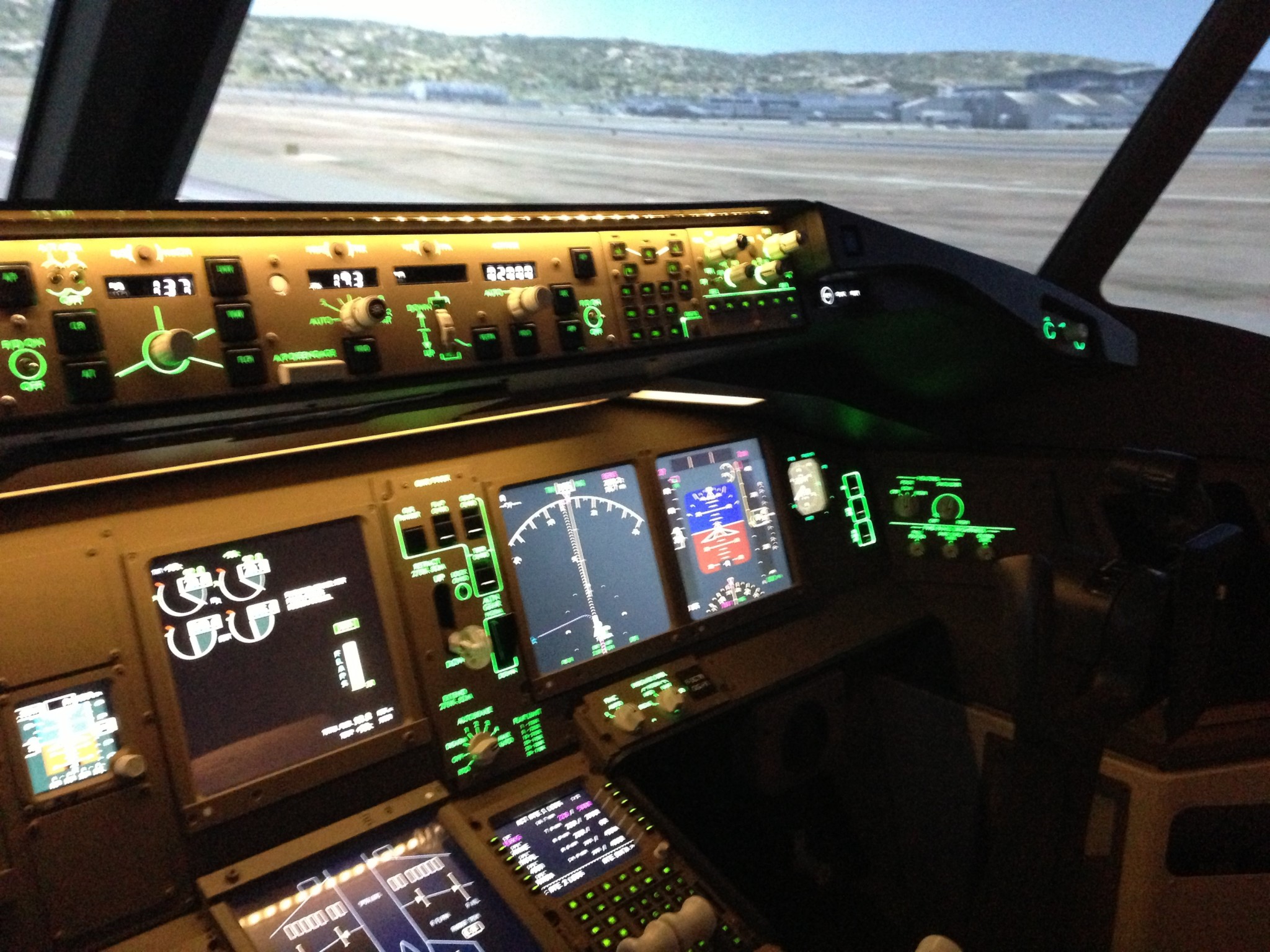 Après quelques minutes, il est temps de passer aux choses sérieuses, choisir sa destination : pour ma part, je voulais atterrir à San Francisco et survoler le Golden Gate et Alcatraz. Mon formateur m’a donc proposé un vol simple “Auckland – San Francisco”. Je suis rentré dans le simulateur, sombre et illuminé de tous les capteurs et c’était parti pour l’aventure aérienne de ma vie… (enfin de 40 minutes, décollage, et atterrissage compris car c’était largement suffisant pour me faire une idée globale de ce vol virtuel).
