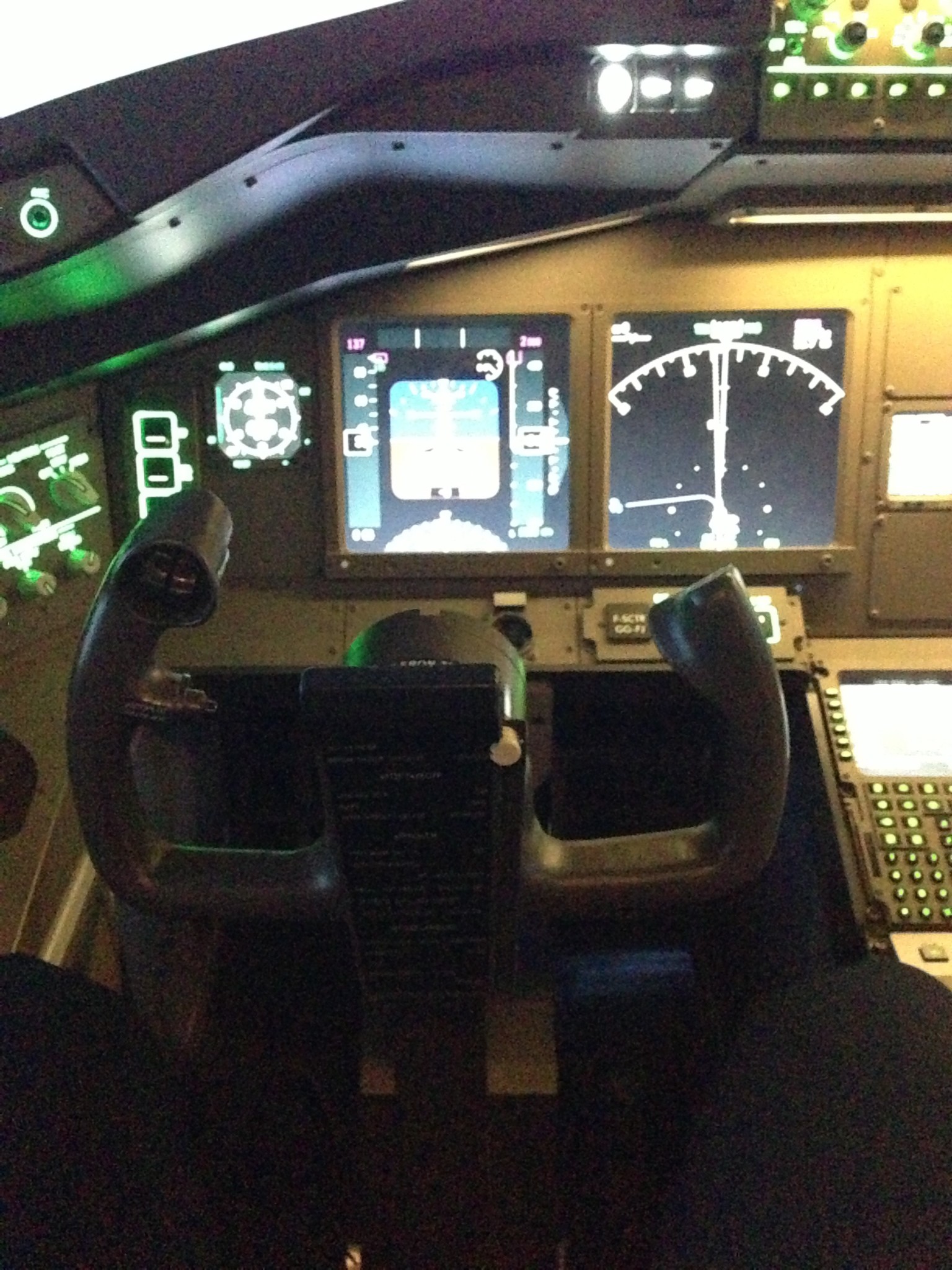 Comme d’habitude, je ne vais pas révéler ici les détails du vol, mais vous donner mes impressions personnelles plutôt : On s’y croit vraiment ! Le matériel est d’origine (Boeing 777) et tout est fait pour que vous soyez dans cet avion… Même si la vue reste virtuelle, vous avez les vibrations, les bruits et le retour de force du manche à balai quand vous bougez l’avion. Votre vie à l’extérieur du cockpit n’existe plus et vous vous concentrez pour pas crasher les faux passagers de votre coucou… Le temps passe très vite et votre formateur vous guide bien, ça devient assez ludique, ça donne envie de continuer le vol !