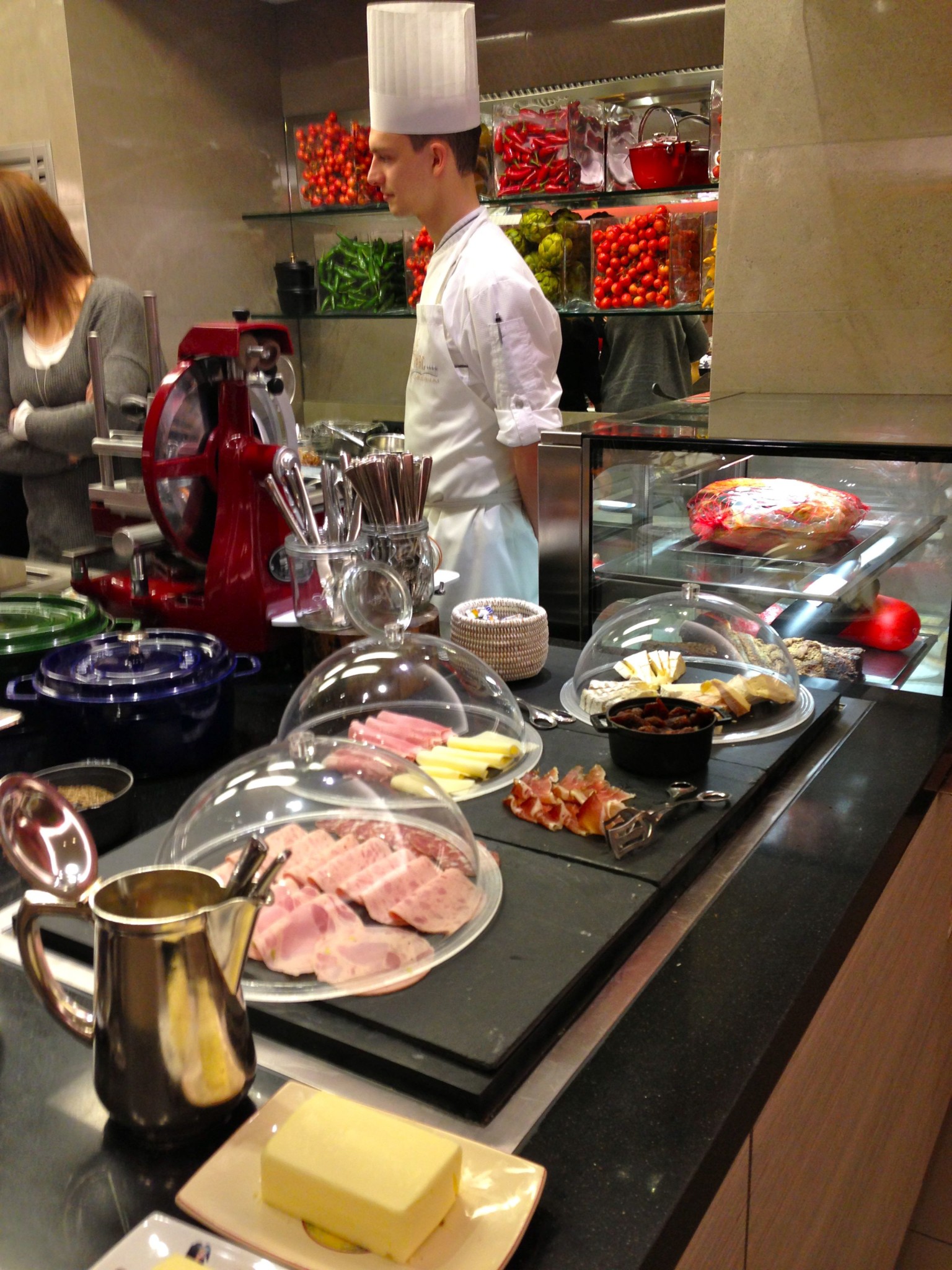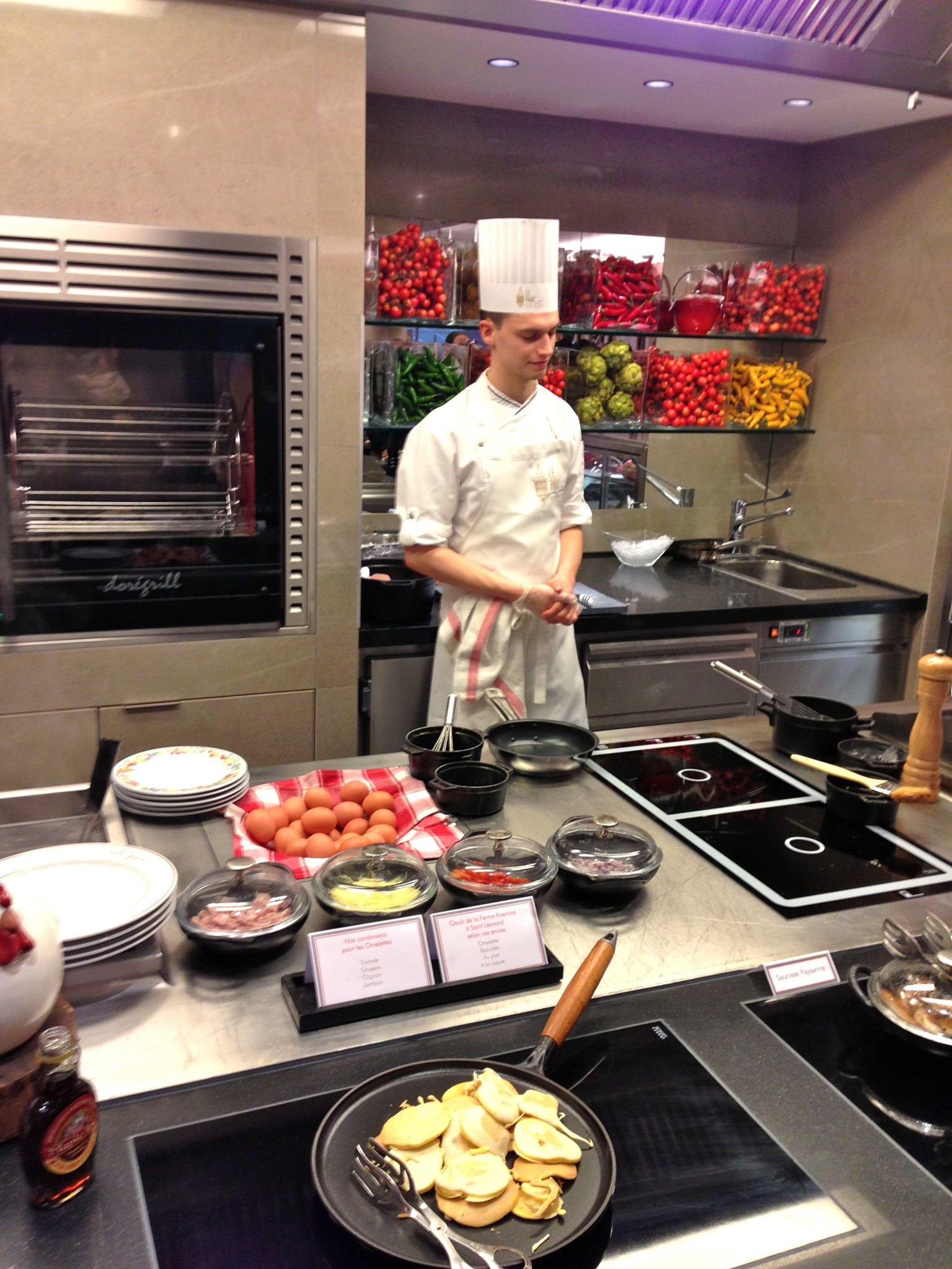 Nous avons eu la chance et la gourmandise de gouter à ces délices du petit déjeuner le week-end dernier suite à l’invitation du maitre des lieux M. Maxime Wucher (Directeur de l’hôtel). Le temps de découvrir la salle, décorée au gout de la légende Tomi Ungerer (jusqu’aux sièges !), on a mis la main à la pâte les uns après les autres pour préparer nos œufs “personnalisés” derrière les fourneaux accompagnés du chef !
