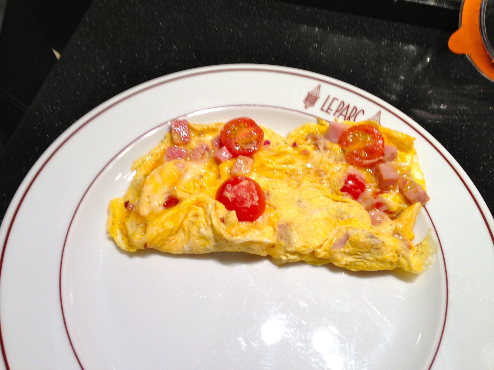 Pour ma part, pour éviter de faire le malin devant de talentueuses blogueuses, je me suis contenté de faire une omelette bien baveuse avec toutes sortes d’ingrédients…