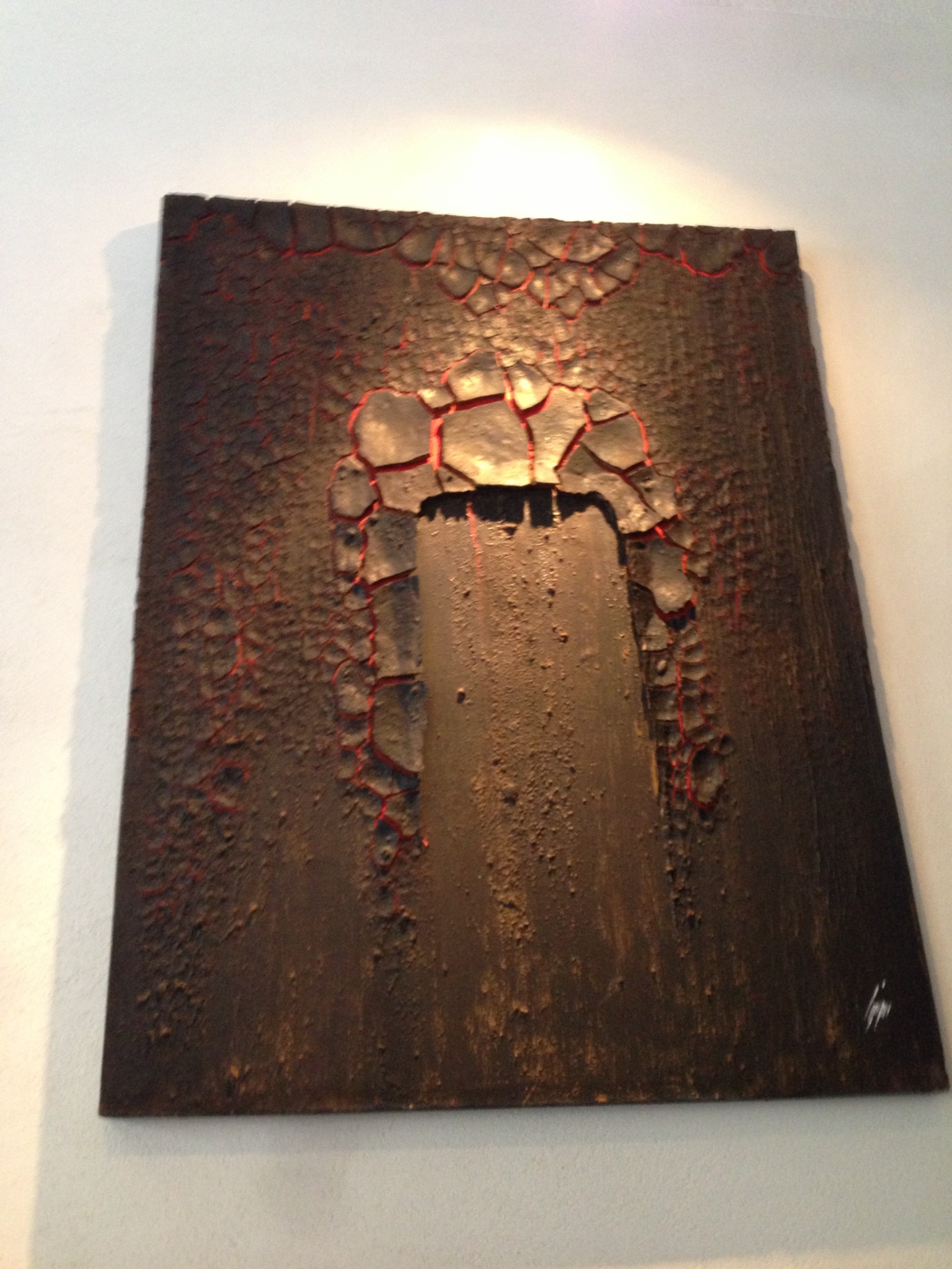 Le cadre est charmant, bien décoré, tout en sobriété et en croûte de volcans au mur, l’ensemble est bien fini, surtout quand on sait à quoi ressemblait le précédent restaurant (un snack de bagels, pas terrible). Le serveur ( et aussi sans doute le patron?) était plutôt sympa, alignait les jeux de mots en même temps que les plats, ça s’annonçait bien. Le problème, c’est que le meilleur s’arrête là !!!! On a eu le droit par la suite à une cascade de déconvenues à un tel point que j’ai cru que c’était pour « Cauchemar en Cuisine » et que les caméras de M6 allaient débouler !
