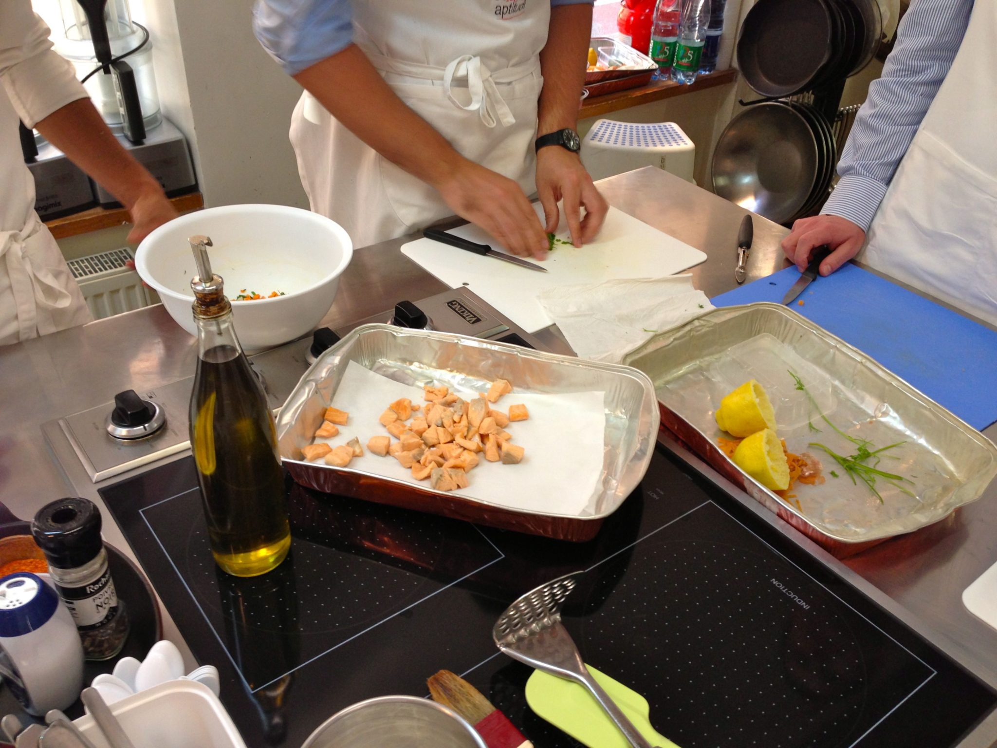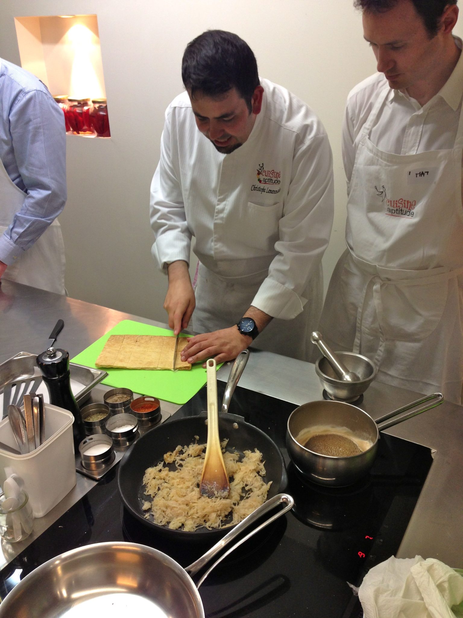 Voilà, tout est dit (ou presque) dans le titre… En effet, j’ai eu la chance de participer avec les ambassadeurs d’Alsace à un sympathique atelier cuisine chez notre ami Nicolas Jean de chez Cuisine Aptitude : LA référence des cours de cuisines pour les pros et les particuliers à Strasbourg.