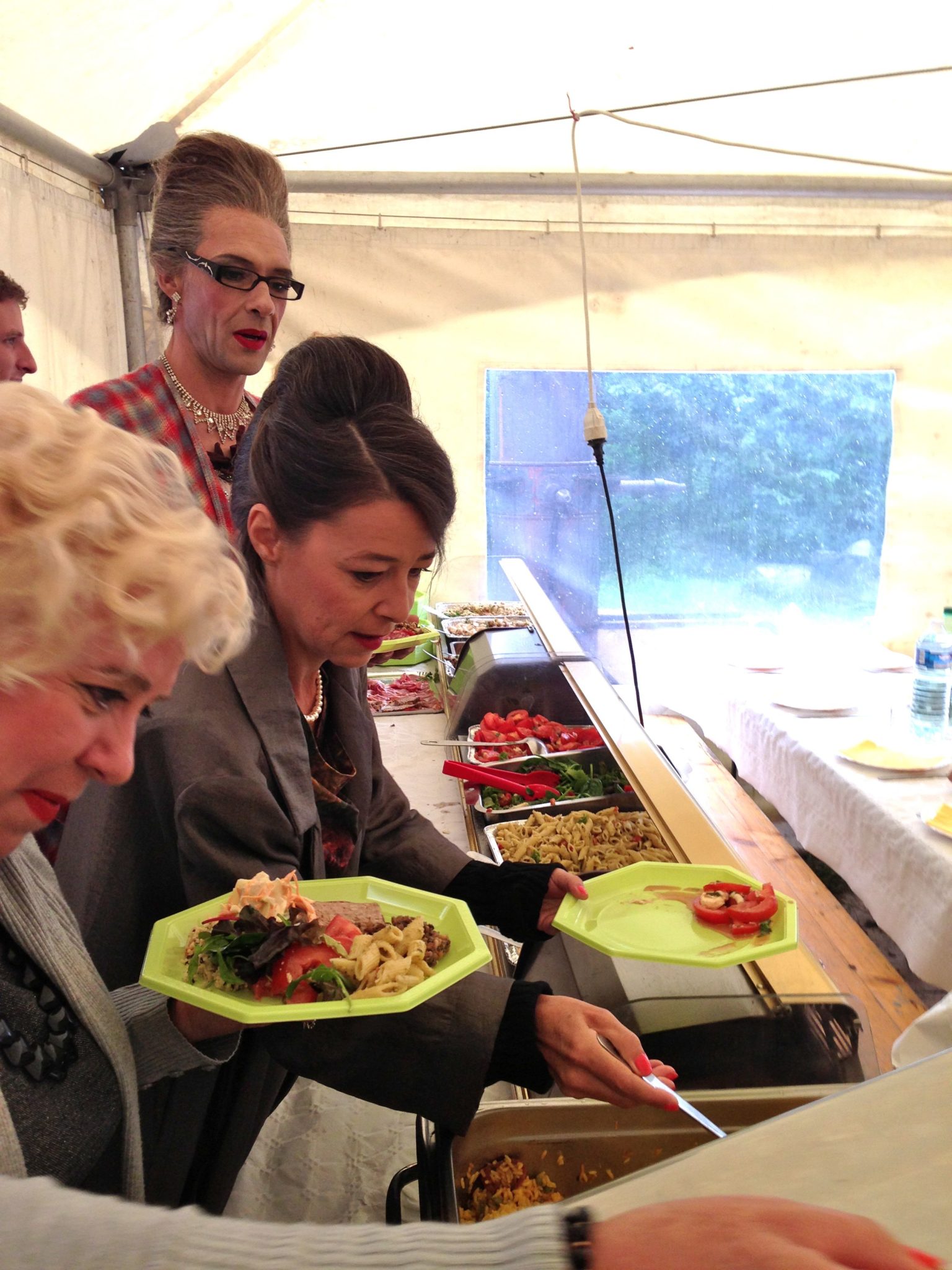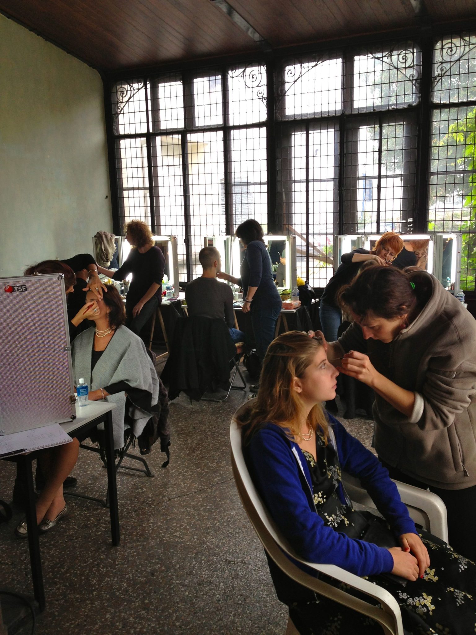 On peut dire qu’on était complètement plongés dans les années 50, tant les costumes, coiffures et maquillages étaient fidèles à l’époque. Super organisation de la part de la Prod, et magnifique travail des habilleuses-coiffeuses-maquilleuses !