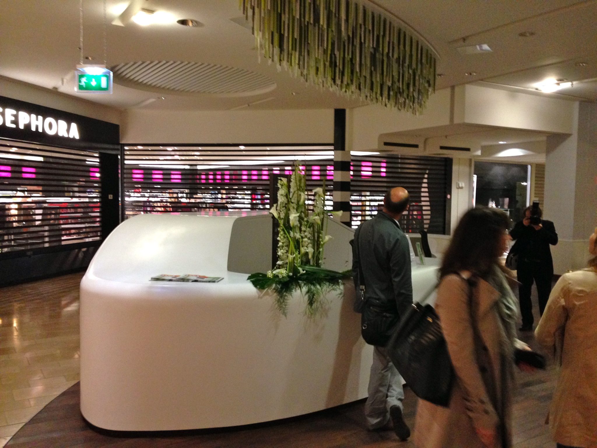 Le nouveau positionnement du centre se veut très naturel : nouveau logo, nouvelle baseline ” le shopping grandeur nature“. Au niveau des nouveautés, on retrouve des nouveaux sanitaires en haut, avec nurserie, beaucoup d’espaces repos, un espace jeux et bientôt à venir le WIFI gratuit et un personal shopper ! Il y a 4 ambiances : sons + odeurs changent en fonction des endroits du centre : par exemple à la fontaine c’est une odeur “ardoise”+ “vanille” et dans les entrées odeur créée spécialement : odeur Place des Halles ! (composition secrète apparemment, à vous de la deviner !)