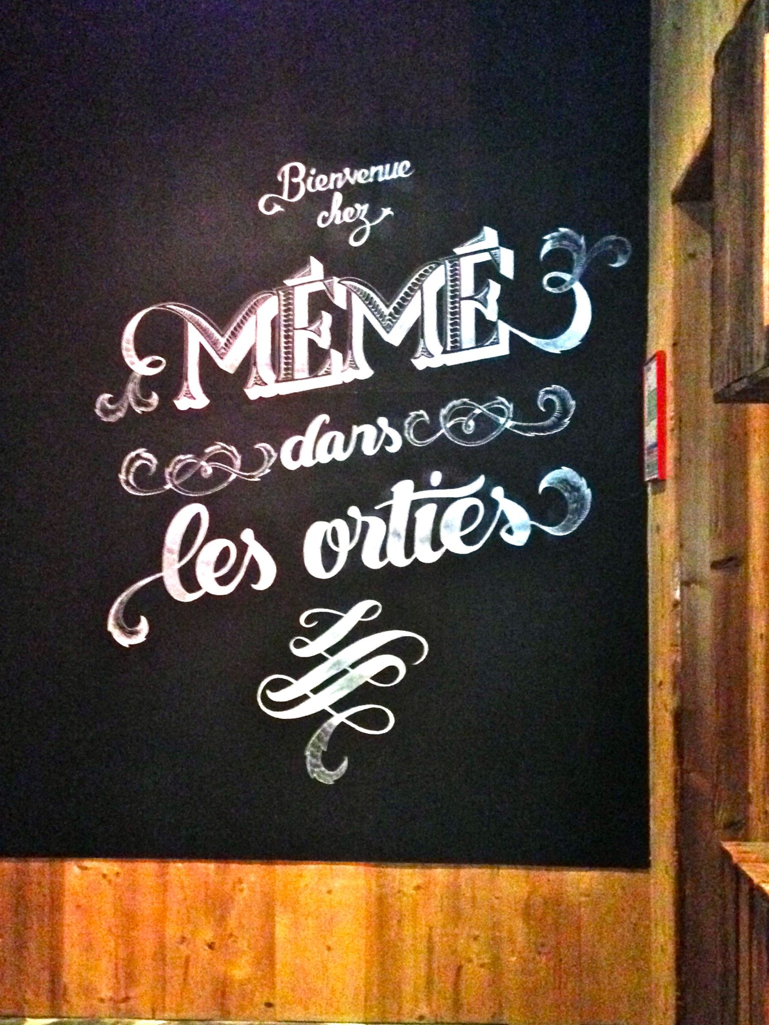 Remplaçant en lieu et place l’Étoile des Neiges , “Mémé dans les Orties” reprend la décoration de ce précédent restaurant avec un coté plus cosy, stylé, branchouille, voir parisien. En fait, on dirait que le Kitsh N’ Bar aurait justement fusionné avec l’Étoile des Neiges et que ça aurait accouché de “Mémé” (à la mode Dragon Ball Z). Du coup, l’endroit est toujours aussi boisé et sympa mais diffère au point de vue de l’offre : il s’agit maintenant plutôt d’un bar / café où on a la possibilité de consommer de la petite restauration.