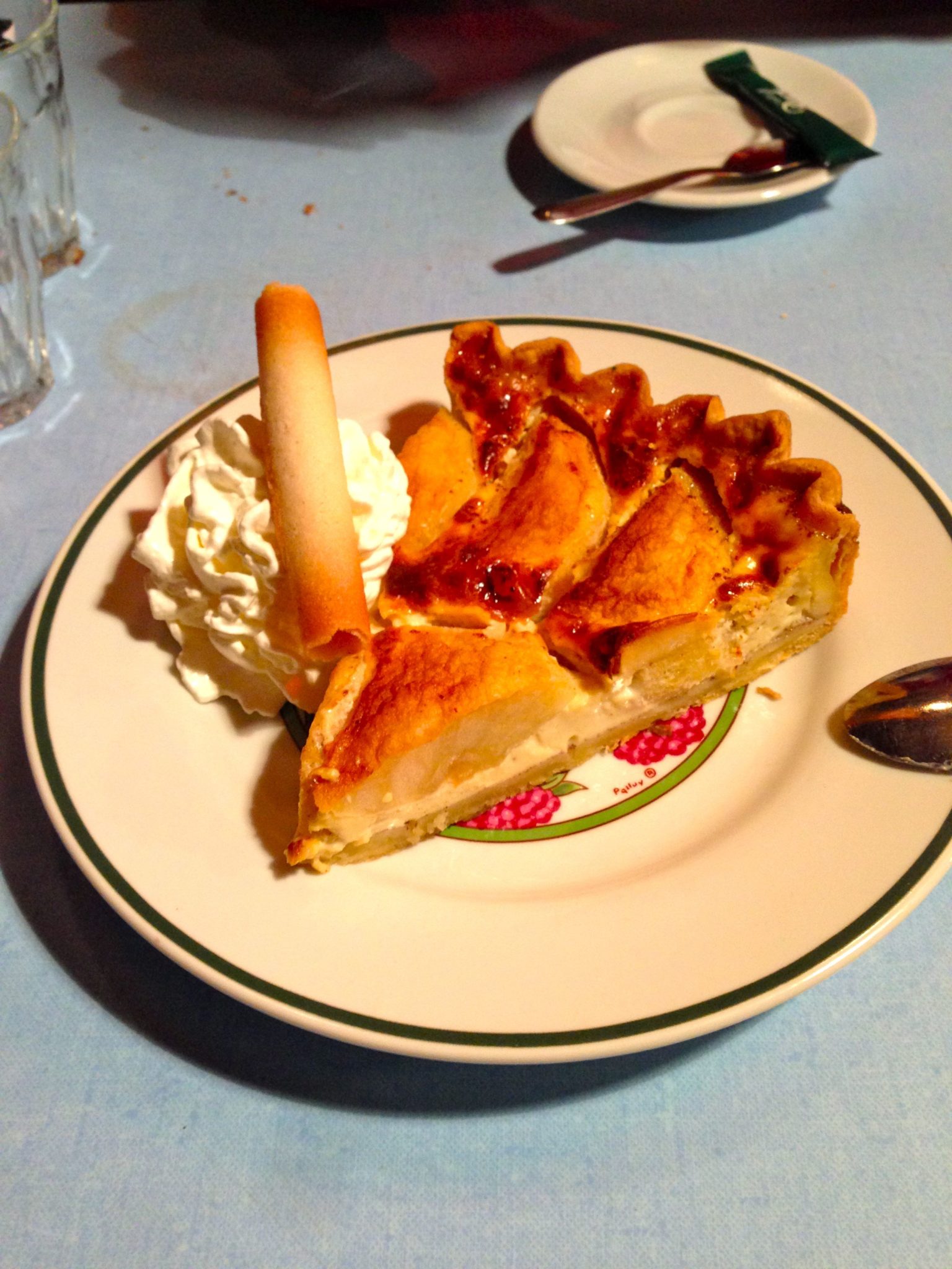 – Dessert là encore, pas chers : 3,90 € pour ma tarte au pommes.