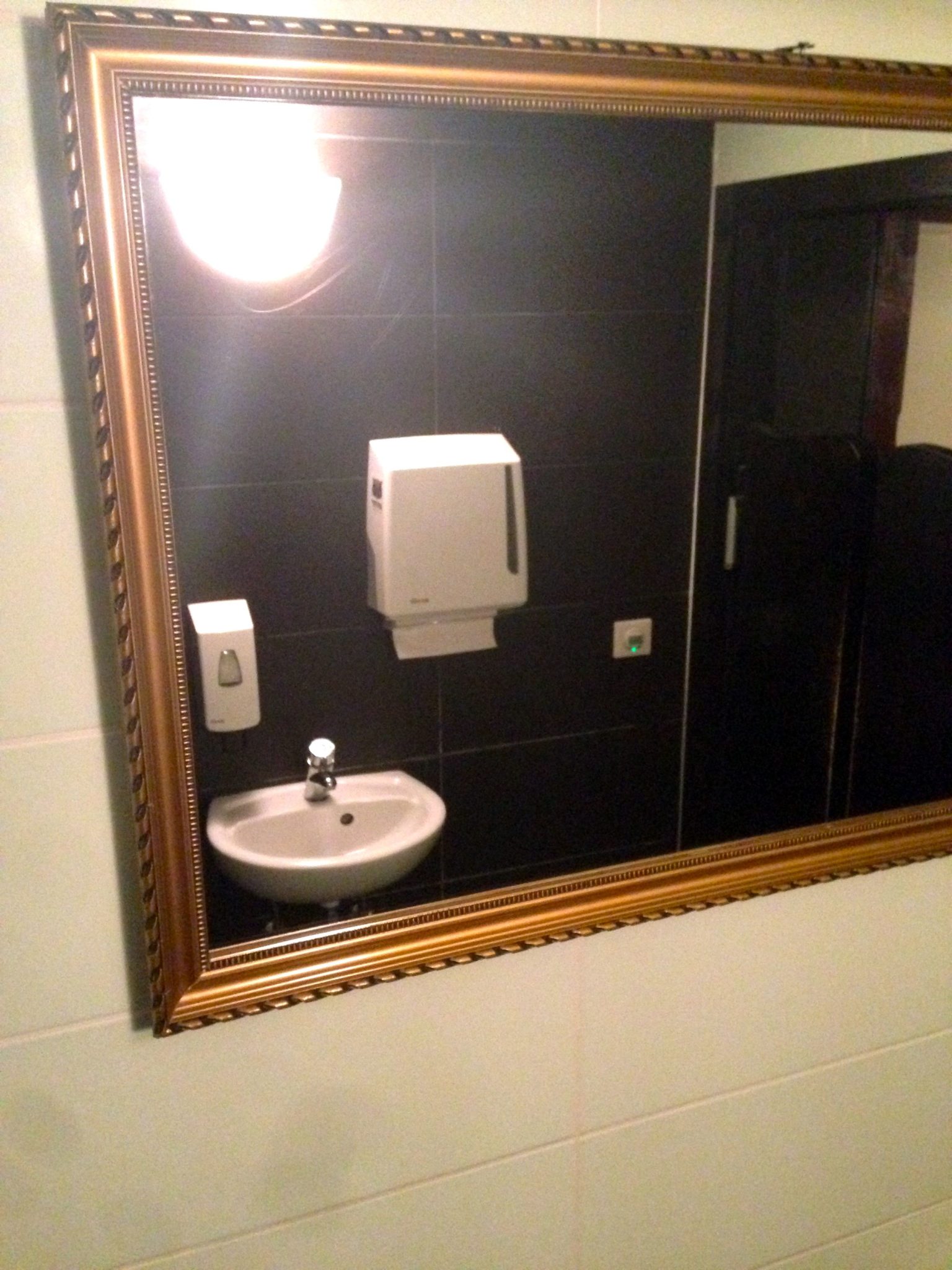 Sinon pour le miroir, on a pas vraiment besoin de se regarder pour se laver les mains non plus. Et le miroir peut être là juste pour la déco et permettre de vérifier son allure avant de retourner dans la salle.