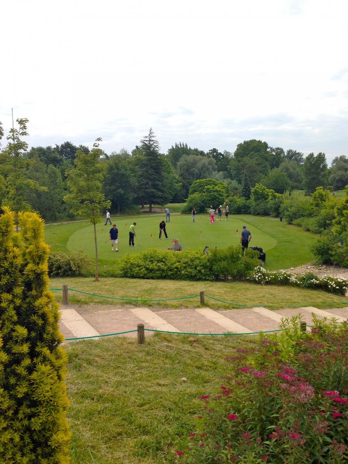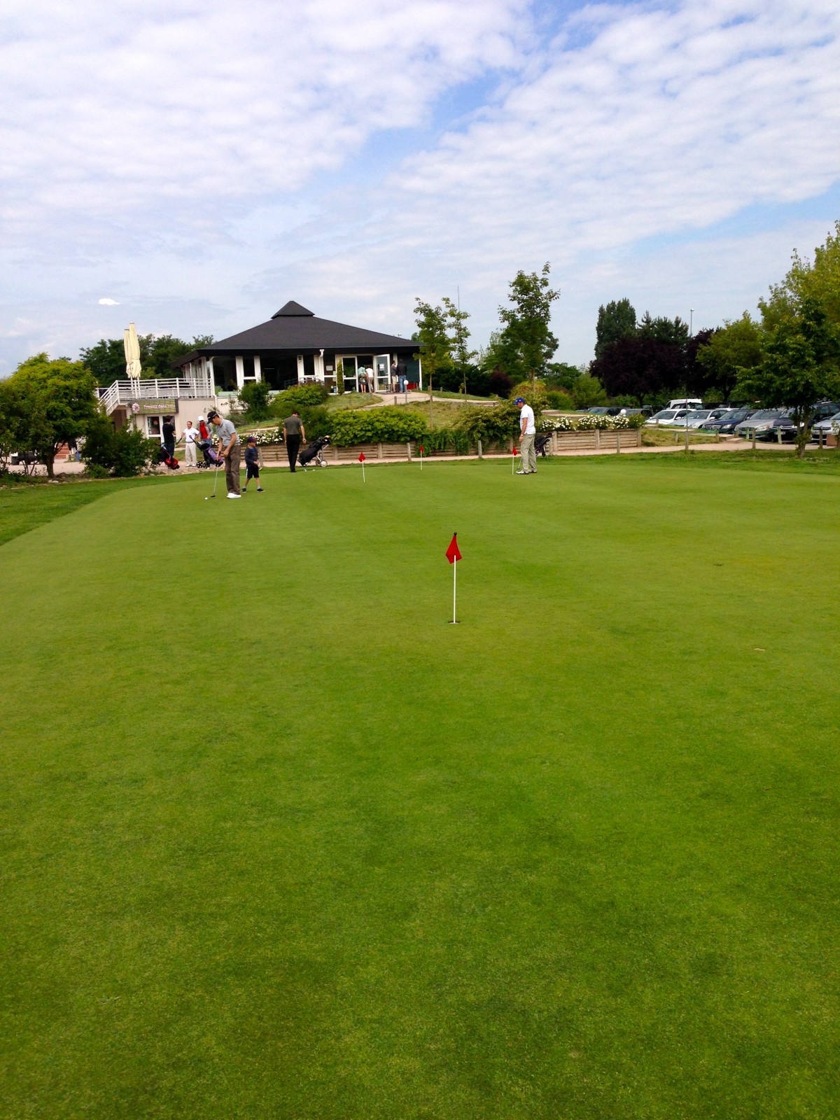 Ensuite, Lucas nous emmène sur le putting green où s’entraîne sur une pelouse tonte à 2mm les golfeurs pour l’approche finale vers le drapeau, puis on a pu voir (sans les déranger) un groupe de 4 golfeurs que le 9 trous, jouer leur partie dominicale.