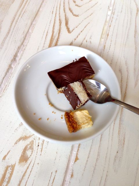Nous avons toutes les deux testés le twixx maison (une tuerie, j’ai a-do-ré, elle aussi) et le latte macchiato (peut être pas le choix idéal pour vraiment apprécier le café).