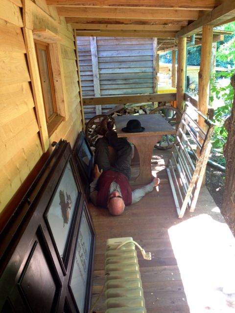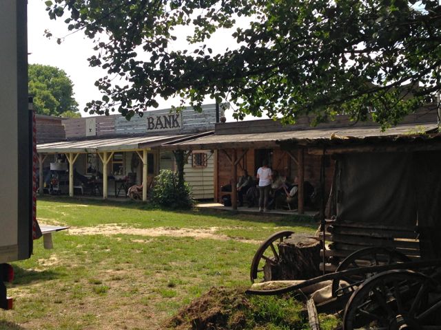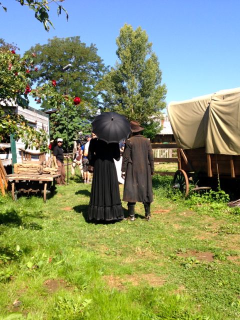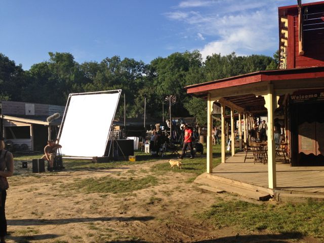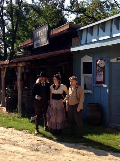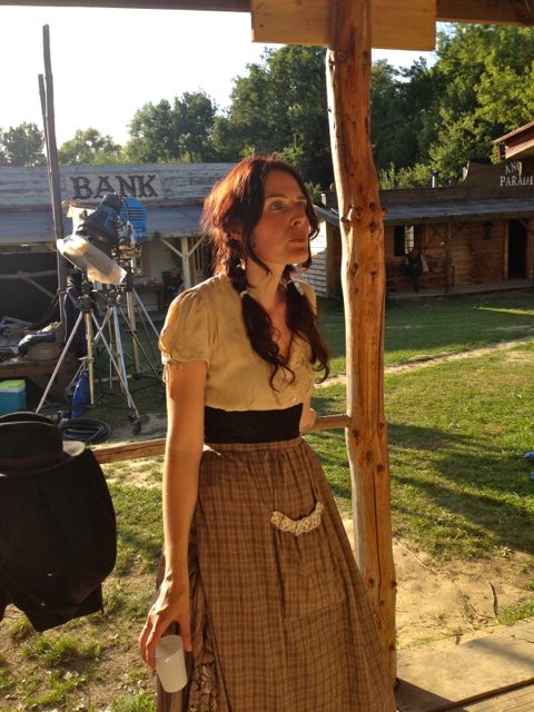Tout d’abord, le lieu : “Two River City” est un magnifique village western privé, reconstitué avec beaucoup de précision, il appartient à une association de passionnés de l’époque, il a été loué à la production, le temps du tournage. La météo : 30°C à l’ombre, pas un nuage, ambiance parfaite pour recréer l’Ouest américain, par contre, les costumes sont difficiles à supporter surtout pour les femmes avec leurs corsets. L’ambiance est très bonne, et le tournage des scènes s’enfile comme des perles avec un rythme assez soutenu. Parfois fatigant vu la chaleur, mais ça reste cohérent car beaucoup de boulot : 10 épisodes de 26 minutes à boucler cet été, sachant que la météo a fait des siennes parfois avec les tempêtes de début juillet.