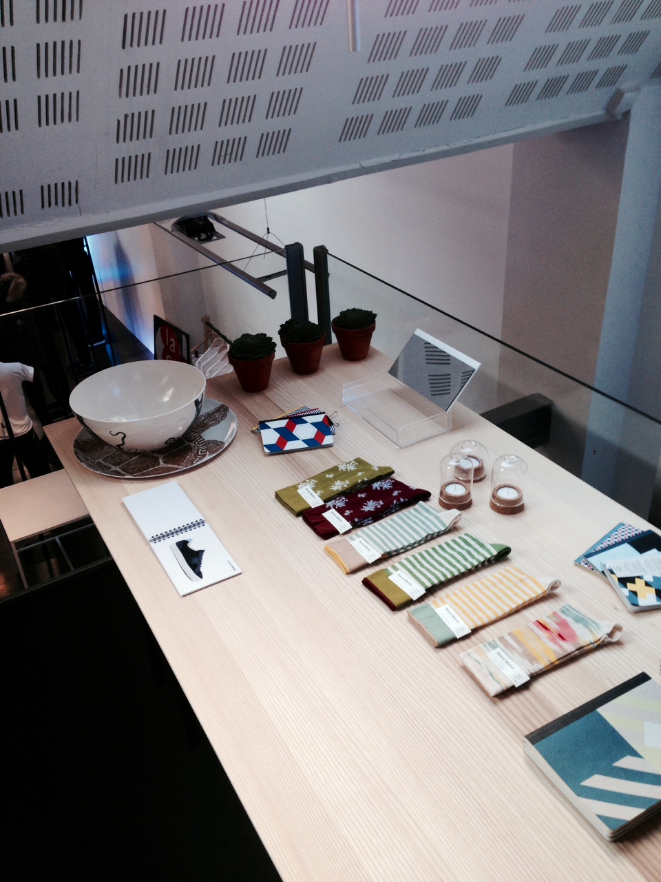 J’y ai croisé Camille, la blogueuse lifestyle, qui comme moi déambulait dans ce joli lieu à la recherche d’infos sur ce nouveau concept… Il s’agit donc d’un nouveau shop de fringues pour hommes, dans un lieu très bien décoré un tout petit peu en retrait le long du quai Kellermann. On est tout de suite scotché par l’esthétisme des lieux, moi j’adore particulièrement le sol en béton ciré, j’aurai rêvé de faire ça dans mon ancienne boutique… Je ne connais pas la gamme vendue, mais c’est très sympa, belles coupes, belles finitions : mais peu de choix à première vue. Les convives partagent un thé et des bonbons, pendant que les knacks et bières tournent à l’extérieur… On a le temps de jeter un œil en haut et sur cette petite mezzanine on y découvre des petits accessoires et le reste de la gamme, au niveau du prix, c’est assez cher, mais sans doute en corrélation avec le lieu, la marque et les marges nécessaires pour faire tourner ce bel endroit.