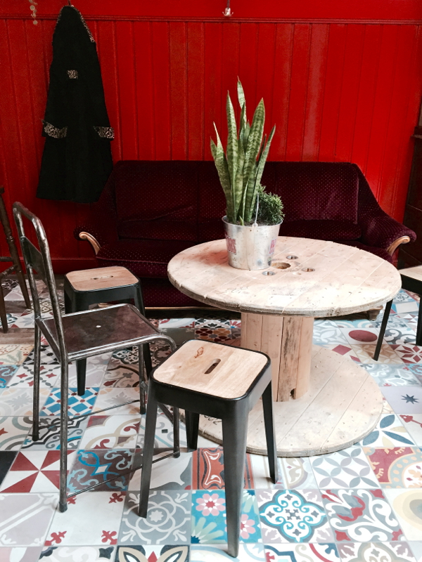 L’endroit est donc devenu cosy, frais, décoré avec des matériaux de récup: l’ensemble se coordonne très bien et on se sent tout de suite à l’aise. Avec la verrière, ça donne un coté convivial, et ça m’a fait tout de suite penser au Comptoir Général à Paris (déjà un coup de cœur !). Dès qu’on arrive, on a juste envie de se poser, discuter, manger ou boire un coup…