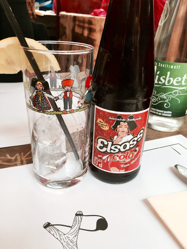 Sans trop me forcer, il me reste de la place pour un dessert : une foret noire glacée assez rafraîchissante, malgré la météo. Sur le reste du menu, on retrouve pas mal de plats alsaciens ou des références alsaciennes revisitées. En manque de Coca light, je me rattrape avec un Elsass Cola (non light), qui passe plutôt bien. Le service est rapide et souriant, comme d’hab, rien à redire dessus.
