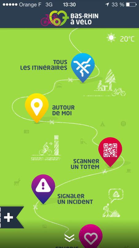 L’application mobile « Bas-Rhin à vélo » est sortie officiellement en juin 2013. Depuis, une version plus ergonomique et disposant d’un nouveau graphisme, est arrivée sur les stores en juin 2014. Uniquement disponible sur iPhone et Android jusqu’ici, « Bas-Rhin à vélo » est désormais également disponible sur WindowsPhone.