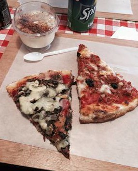 En ce qui concerne les pizzas (sans viande ni fromage), ce fut un délice ! Une pâte délicieuse, et une garniture qui l’était tout autant !