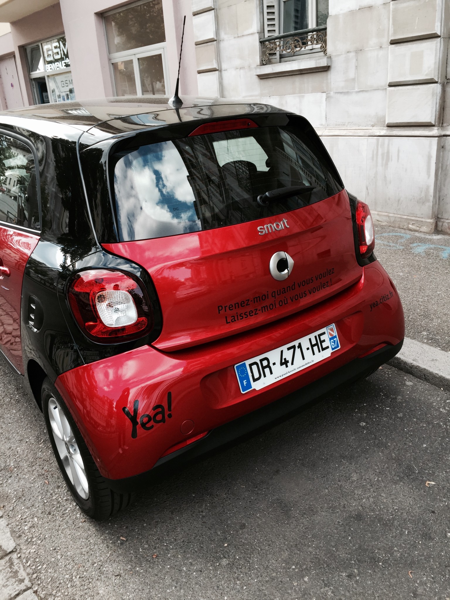 Il s’agit donc de louer une voiture en autopartage, comme le faisait déjà Citiz mais de se libérer de la contrainte de la station et de la réservation. En gros, il faut consulter l’appli mobile de Citiz, repérer si une Yea (prononcez Yé !) est disponible dans les parages, la réserver via l’appli, se rendre sur place, effectuer sa location et la redéposer où vous voulez dans la zone définie.