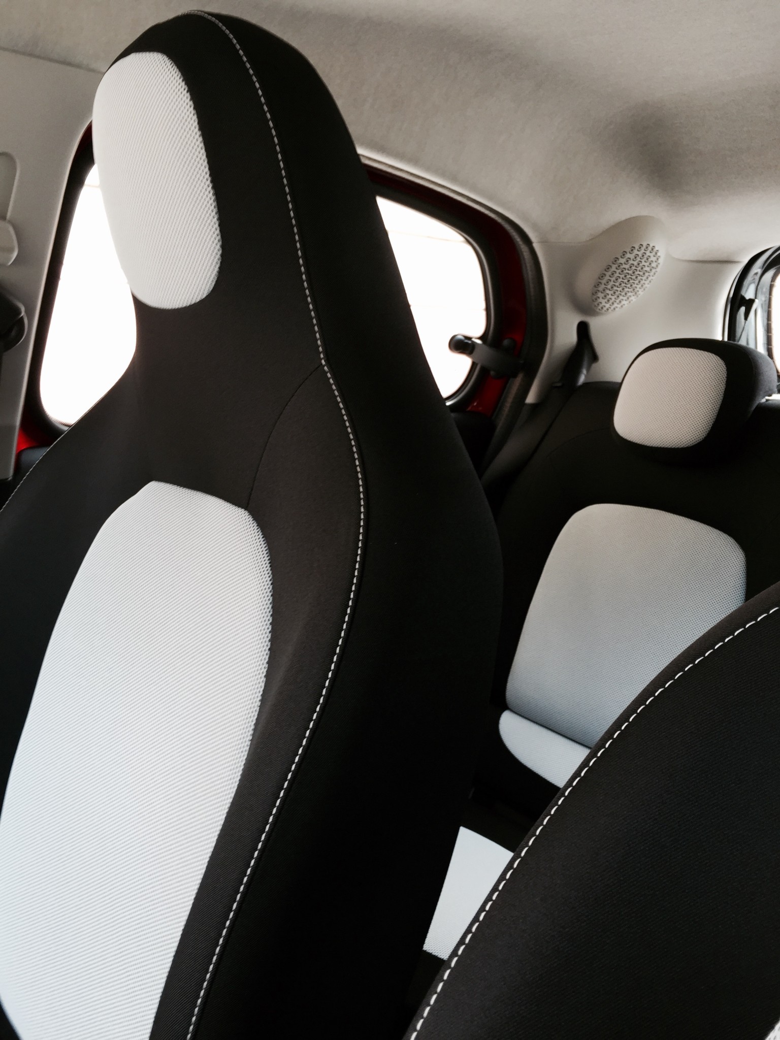 Cependant, l’intérieur blanc est un peu salissant, le coffre est petit (moteur à l’arrière) et le rétroviseur intérieur central cache un peu la vue je trouve.