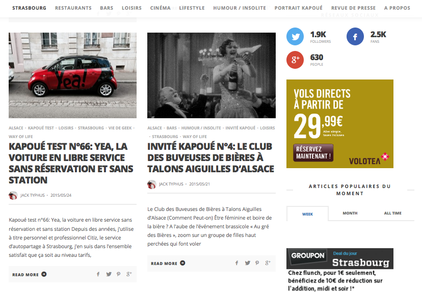 Niveau contenu, rassurez vous, je reste sur la même ligne éditoriale : tout se qui touche de près ou de loin à Strasbourg, si possible du bon, de l’insolite ou du fun ! J’essaye au maximum de varier les sujets et les portraits, dans la limite de mon temps.