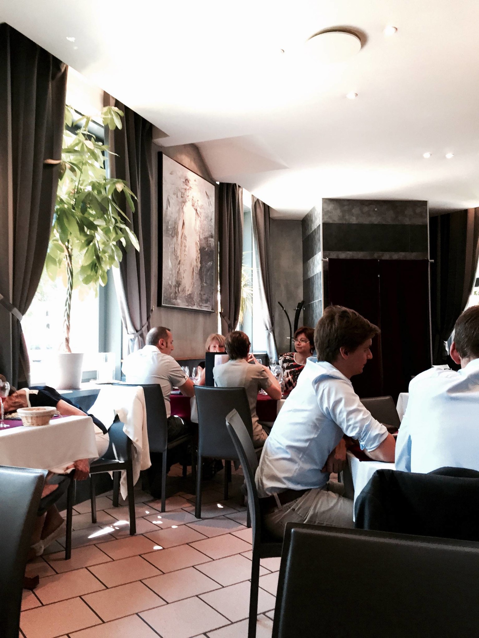 Pour la clientèle, il s’agit d’habitués essentiellement, beaucoup de pros, actifs, qui bossent dans les parages… Du coup, ça parle, et ça parle fort : l’ensemble est un peu bruyant. Bref, pas grand chose à ajouter, bonne surprise. Je ne pense pas y retourner souvent car un peu excentré du centre mais bon, c’est toujours bon à savoir. Il y a aussi une mini terrasse sur le trottoir et détail important, c’est fermé le samedi midi !