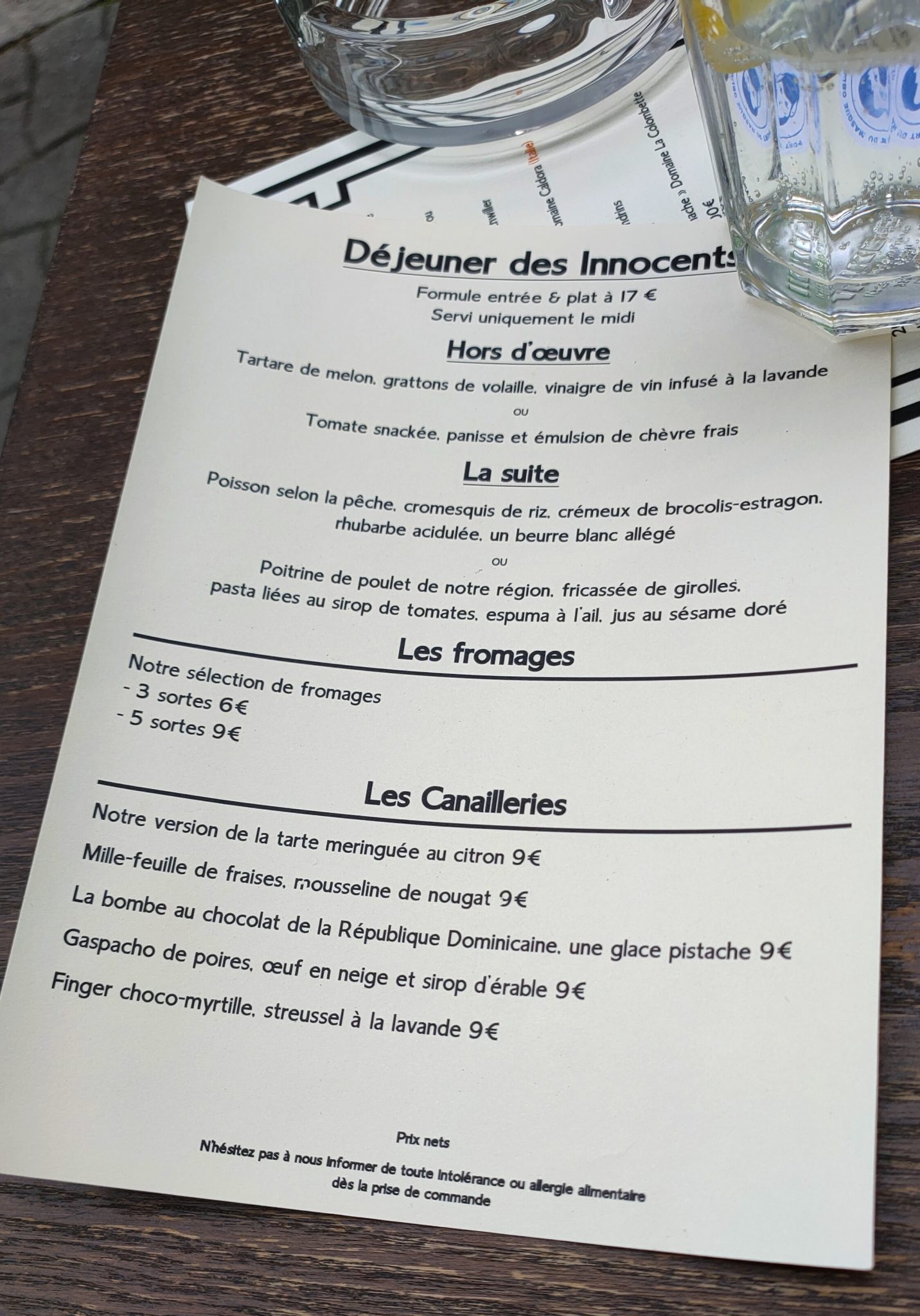 On prend les même et on recommence ! Repas du midi vite fait avec des amis chez les Innocents en cette fin d’été. Rien à redire, le service top, rapide. Les plats sont bons, raffinés et la « bombe » au chocolat est toujours présente… La formule Entrée / Plat est juste maintenant à 17€, mais ça les vaut !
