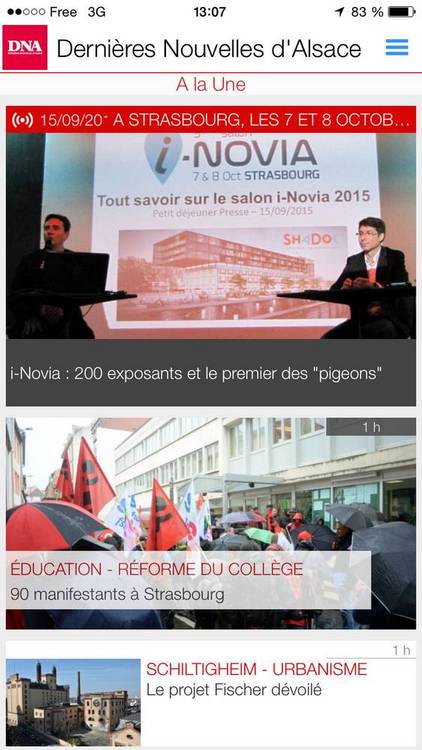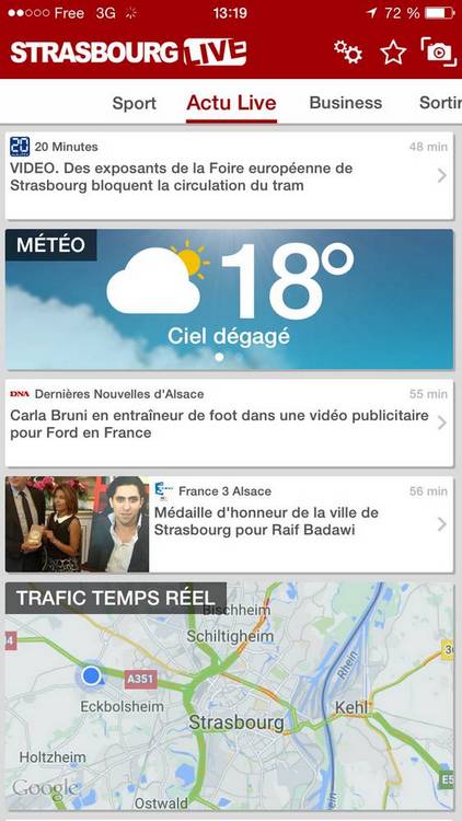 Il y a d’autres applis sur le même thème, et j’ai trouvé Strasbourg Live qui agrège les contenus d’autres médias, mais qui a des options Météo et trafic routier pratiques. Et aussi l’application DNA, premier média de la région, qui est leader sur le marché avec 39.000 visiteurs par jour ..!