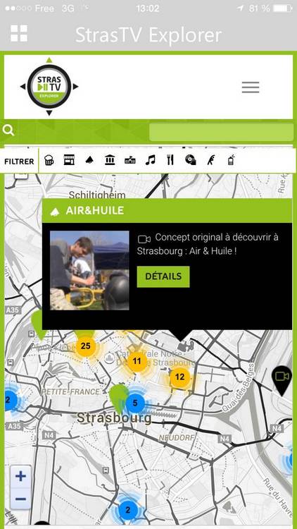 - La fonction StrasTV explorer pas très claire, pas adaptée je trouve aux petits écrans, peut être mieux sur tablettes? (pas testé)