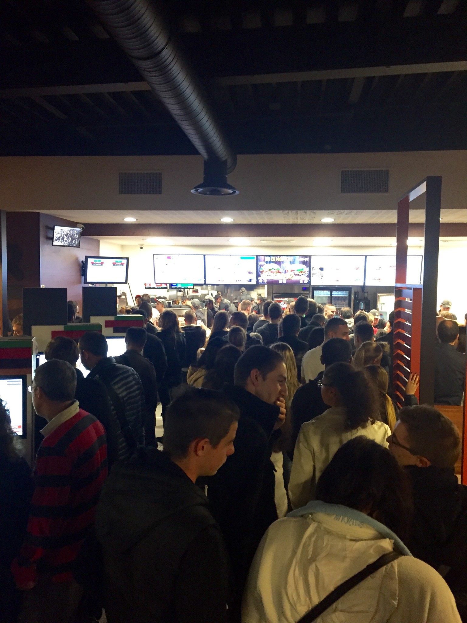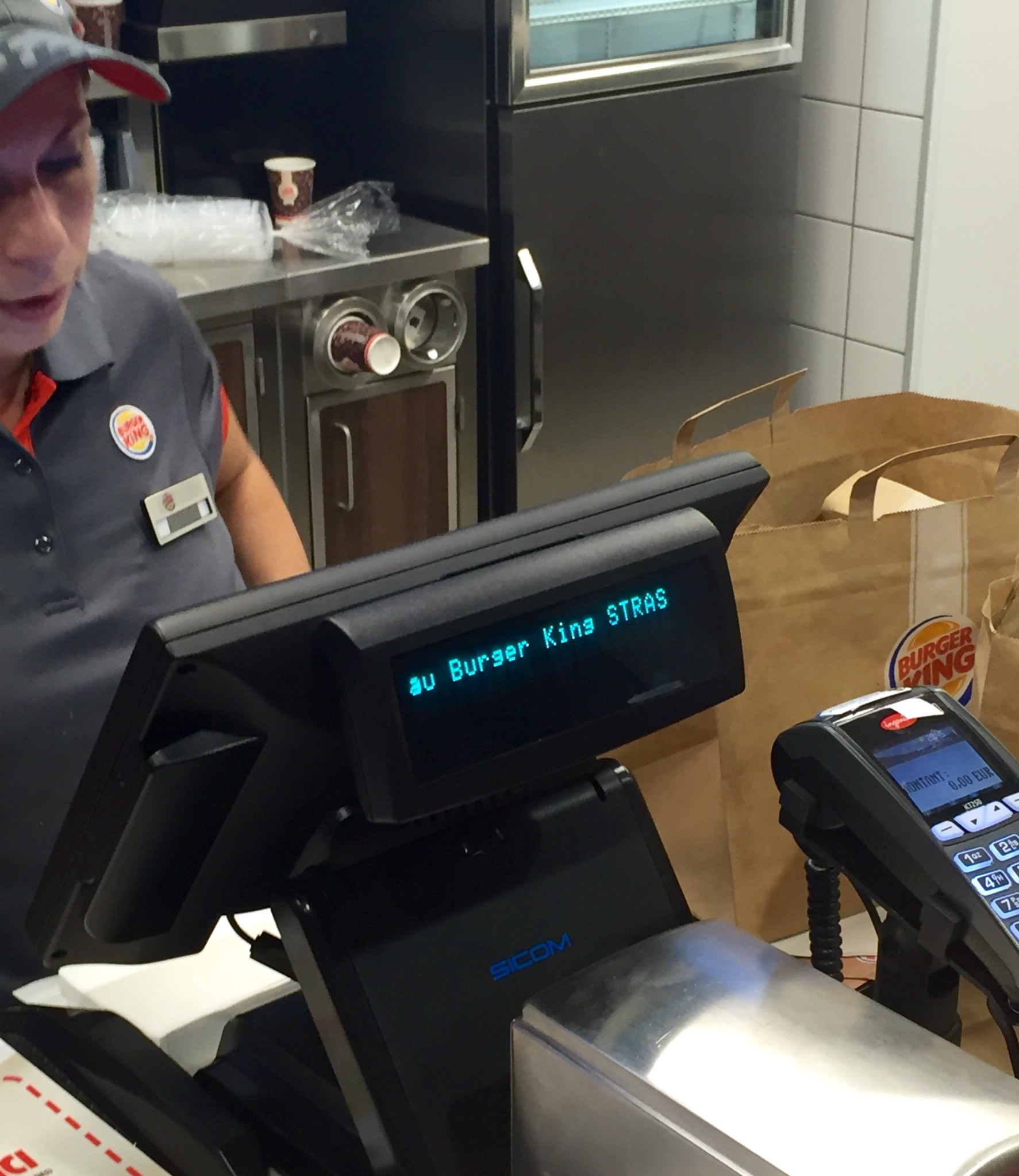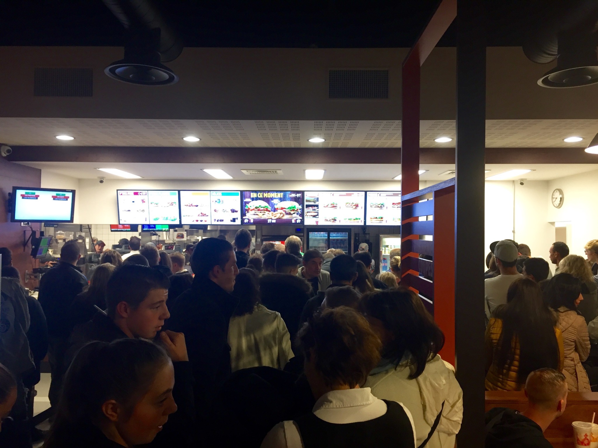 20h17 : Je commence à avoir des fourmis dans les jambes, je suis toujours dans la queue. Je vois des personnes se prendre la tête pour avoir une place assise dans le restaurant, d’autres qui partent sur la terrasse (il fait 12°C dehors) ou encore d’autres qui n’ont pas trouvé de places, demandent des sachets pour aller manger chez eux. Je n’ai toujours pas vu un sourire sur les visages des employés du restaurant, et vu les 36 minutes que je viens d’attendre, je me demande si Burger King Strasbourg ne vient pas d”inviter un nouveau type de fast-food : le slow-food ?!