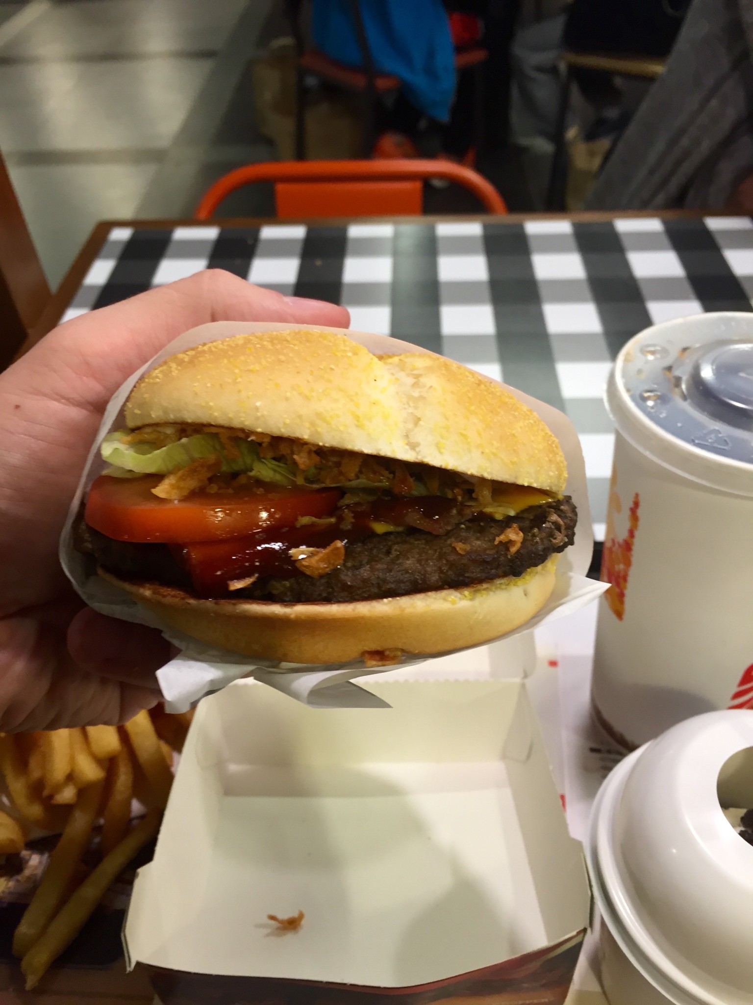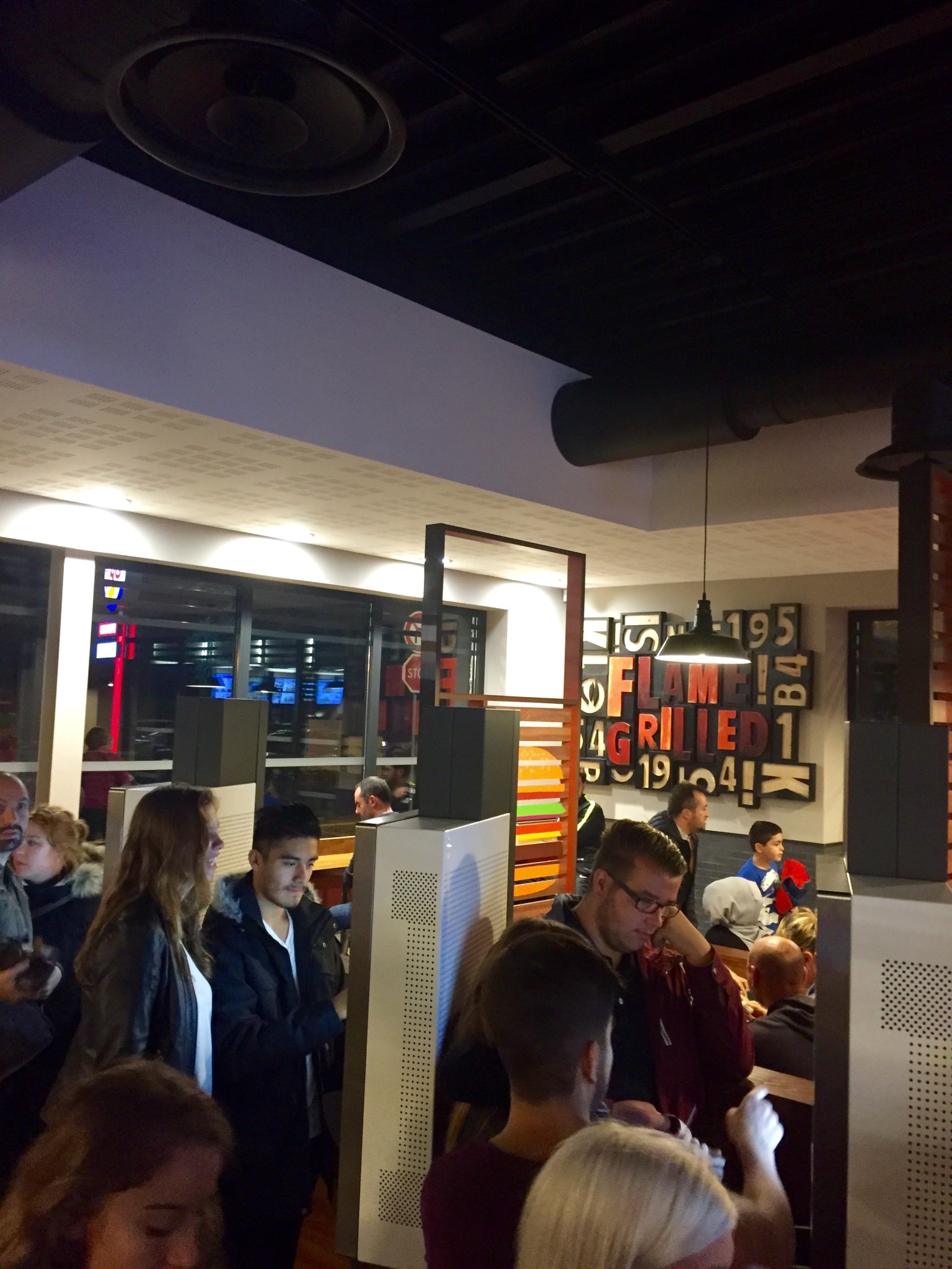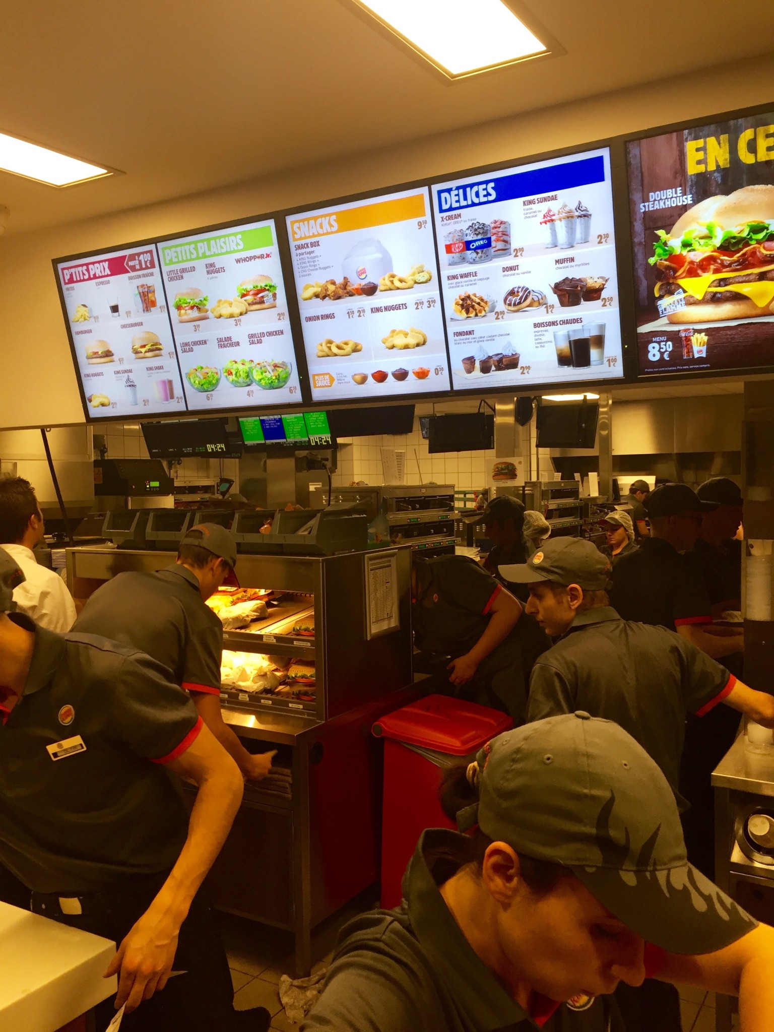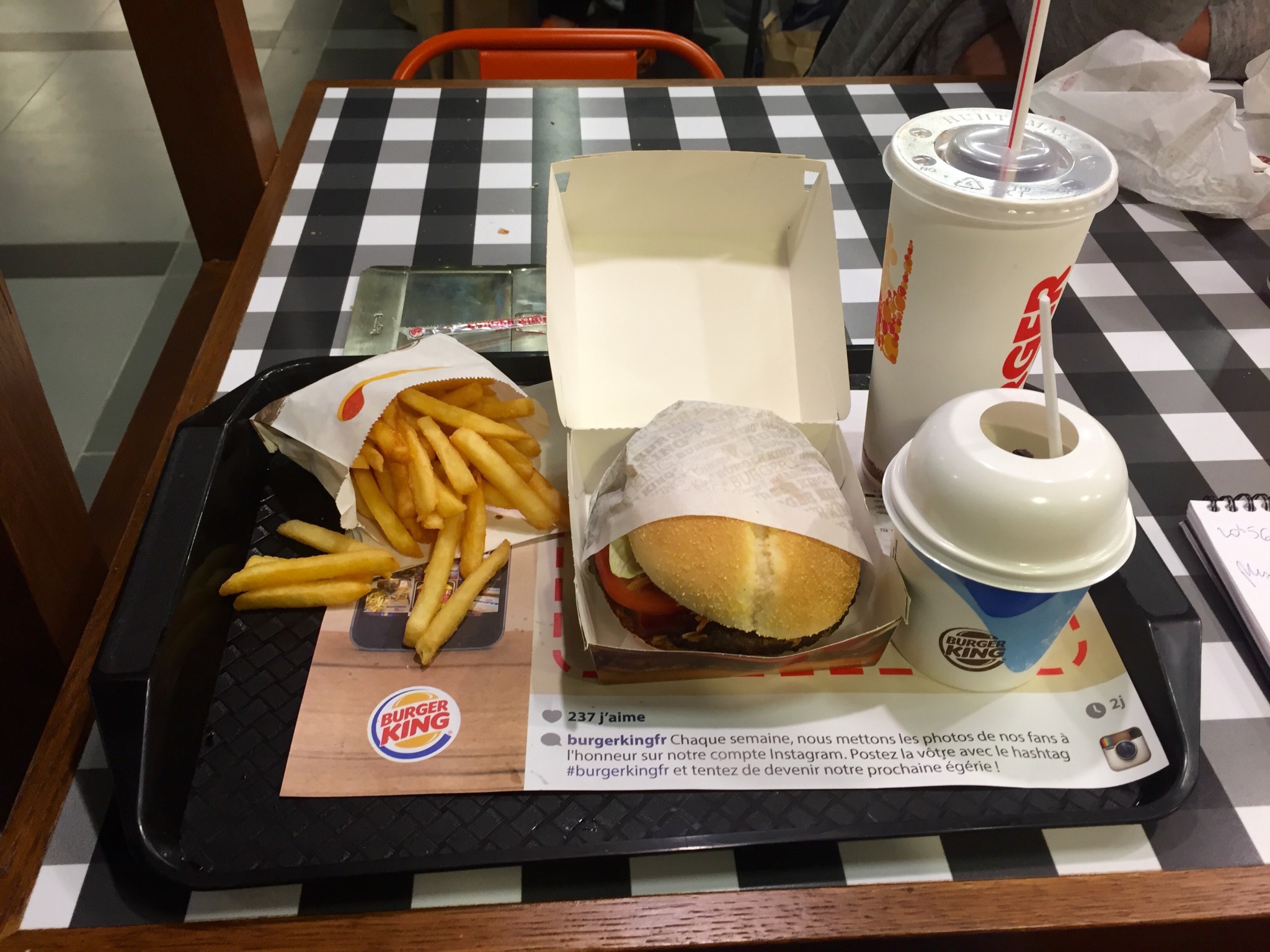 20h17 : Je commence à avoir des fourmis dans les jambes, je suis toujours dans la queue. Je vois des personnes se prendre la tête pour avoir une place assise dans le restaurant, d’autres qui partent sur la terrasse (il fait 12°C dehors) ou encore d’autres qui n’ont pas trouvé de places, demandent des sachets pour aller manger chez eux. Je n’ai toujours pas vu un sourire sur les visages des employés du restaurant, et vu les 36 minutes que je viens d’attendre, je me demande si Burger King Strasbourg ne vient pas d”inviter un nouveau type de fast-food : le slow-food ?!