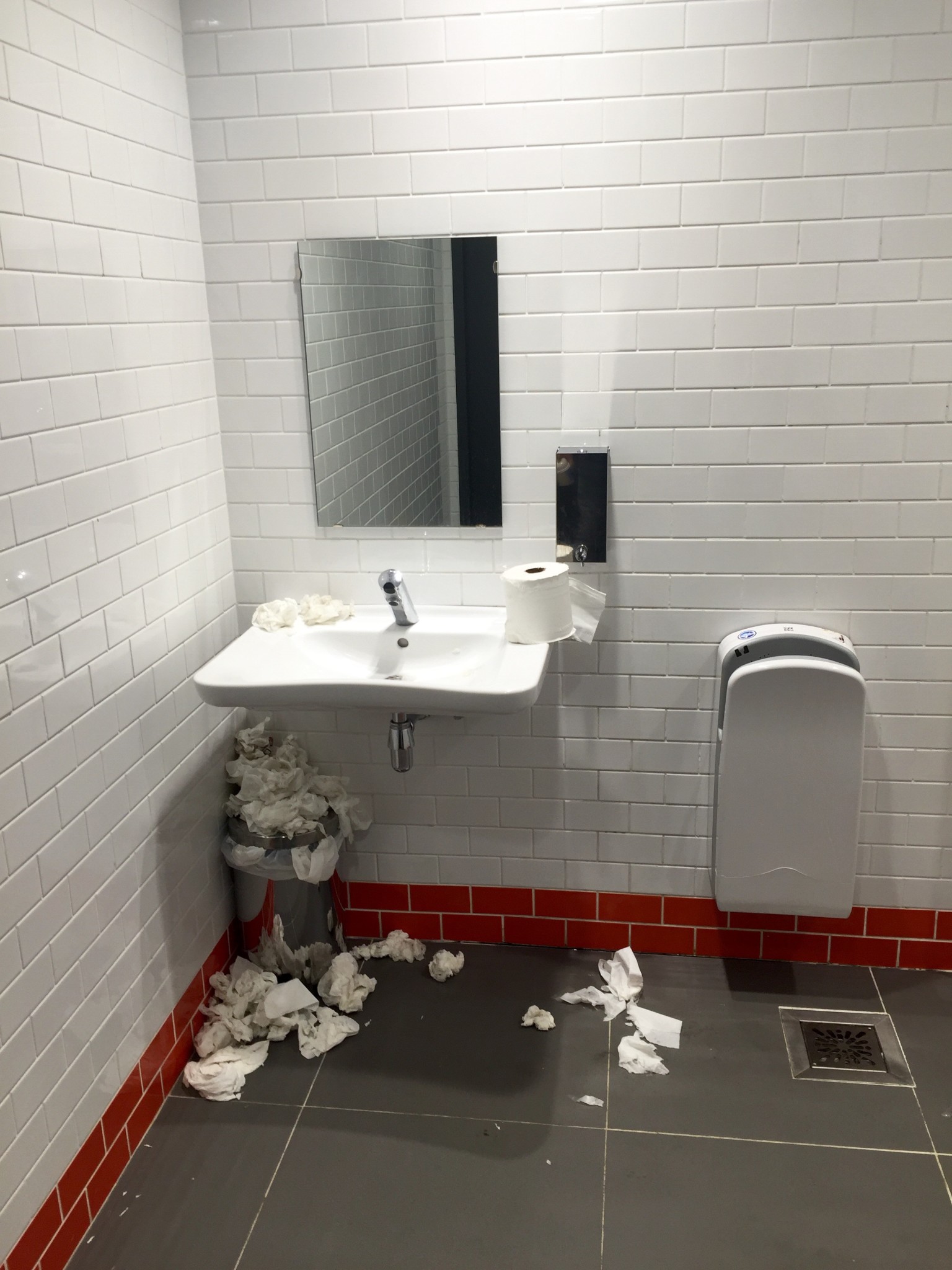 21H12 : La salle se calme, je finis mon repas tranquillou, je suis calé, j’ai même du mal à finir, c’est assez copieux : il me fallait au moins ça pour rétablir mes calories brulées dans la file d’attente ;). Je fais un tour aux WC (sales!) et prends quelques photos et je décolle du royaume du roi du burger.