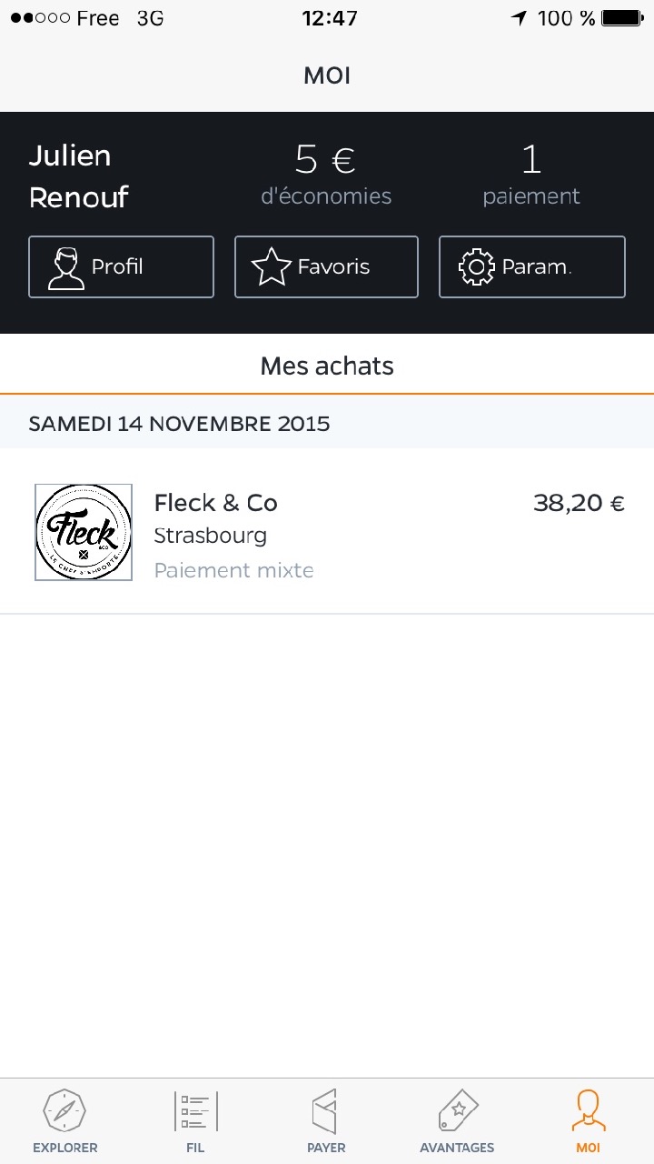 J’ai été agréablement surpris par l’application de par sa simplicité, le nombre de commerçants déjà partenaires et par les avantages. Vous pouvez facilement trouver ce qu’il vous faut et “suivre” les actualités et les offres de vos magasins préférés au fil du temps. Le but est de payer directement avec l’appli qui est reliée à votre compte bancaire en présentant le QR code qui s’affiche sur votre téléphone sur la tablette du commerçant, vous validez et hop, c’est payé. A noter que l’appli est bloquée par code personnel pour des questions de sécurité. Petit bémol, il faut que votre smartphone capte bien dans les boutiques et qu’il soit bien évidemment chargé ! 😉