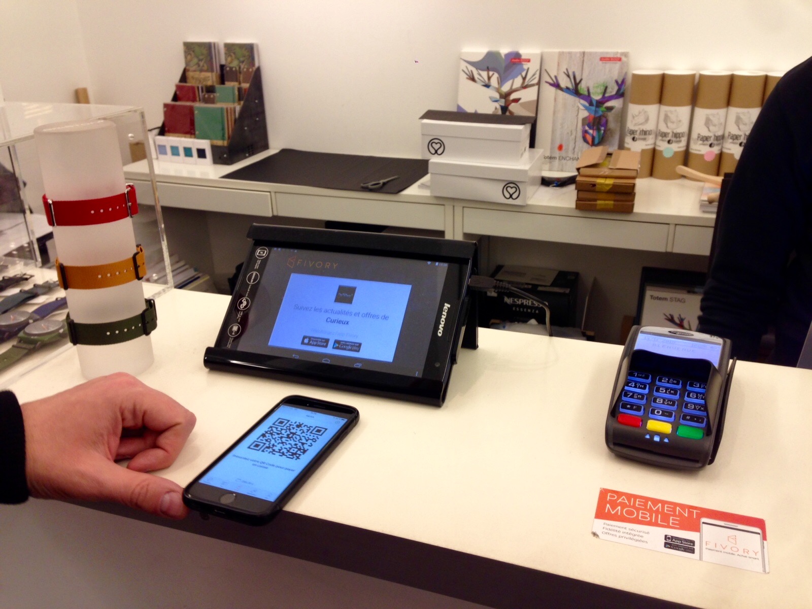 J’ai d’abord commencé par acheté un mobile 3D en carton en forme de tête de loup à monter soi-même chez Curieux, un sac pour le boulot chez Good Vibes, et en enfin un cadeau chez G-Star. A chaque fois bien accueillis par des commerçants qui jouent le jeu de l’application et qui parfois même proposent des offres ciblées si vous payez avec l’appli.