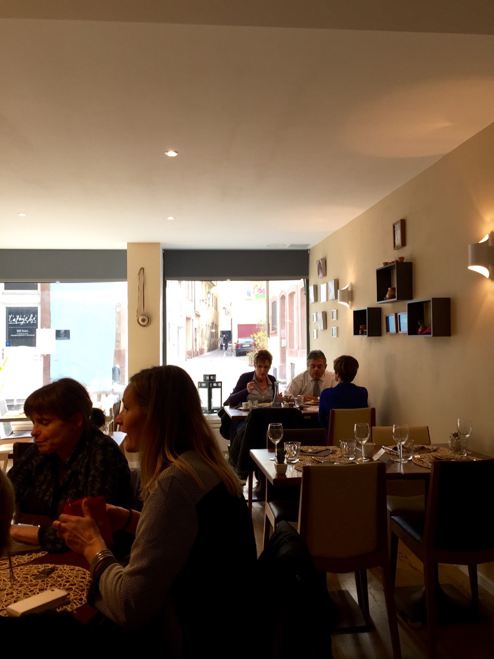 Étonnement, je n’ai pas grand chose à dire ce coup ci : c’était bon, original, bien cuisiné et avec beaucoup de saveurs. La salle s’est vite remplie, du coup, c’est devenu un peu bruyant mais à part ça, tout allait bien, les prix sont cohérents par rapport à ce qu’on mange. Et je dois dire que c’est plutôt sympa de manger des choses différentes que les plats du jours habituels dans les restaurants strasbourgeois.