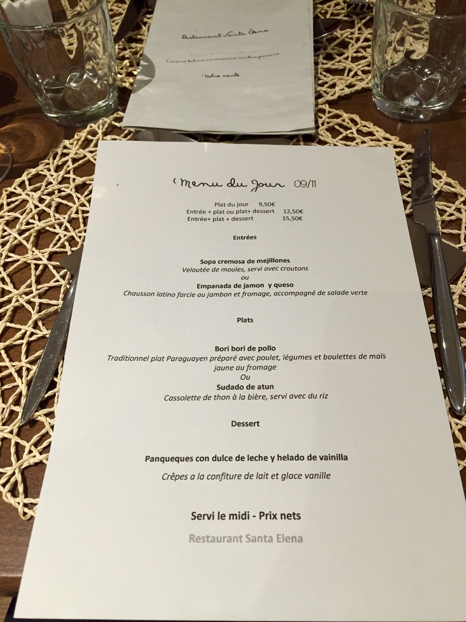 Ouvert déjà depuis janvier 2015, le Santa Elena me narguait à chaque fois que je passais devant : au programme cuisine sud-américaine, péruvienne en particulier, ça donnait envie ! J’ai enfin pu le découvrir il y a quelques jours avec une collègue blogueuse : Miss Elka, voici le résultat de notre repas du midi…