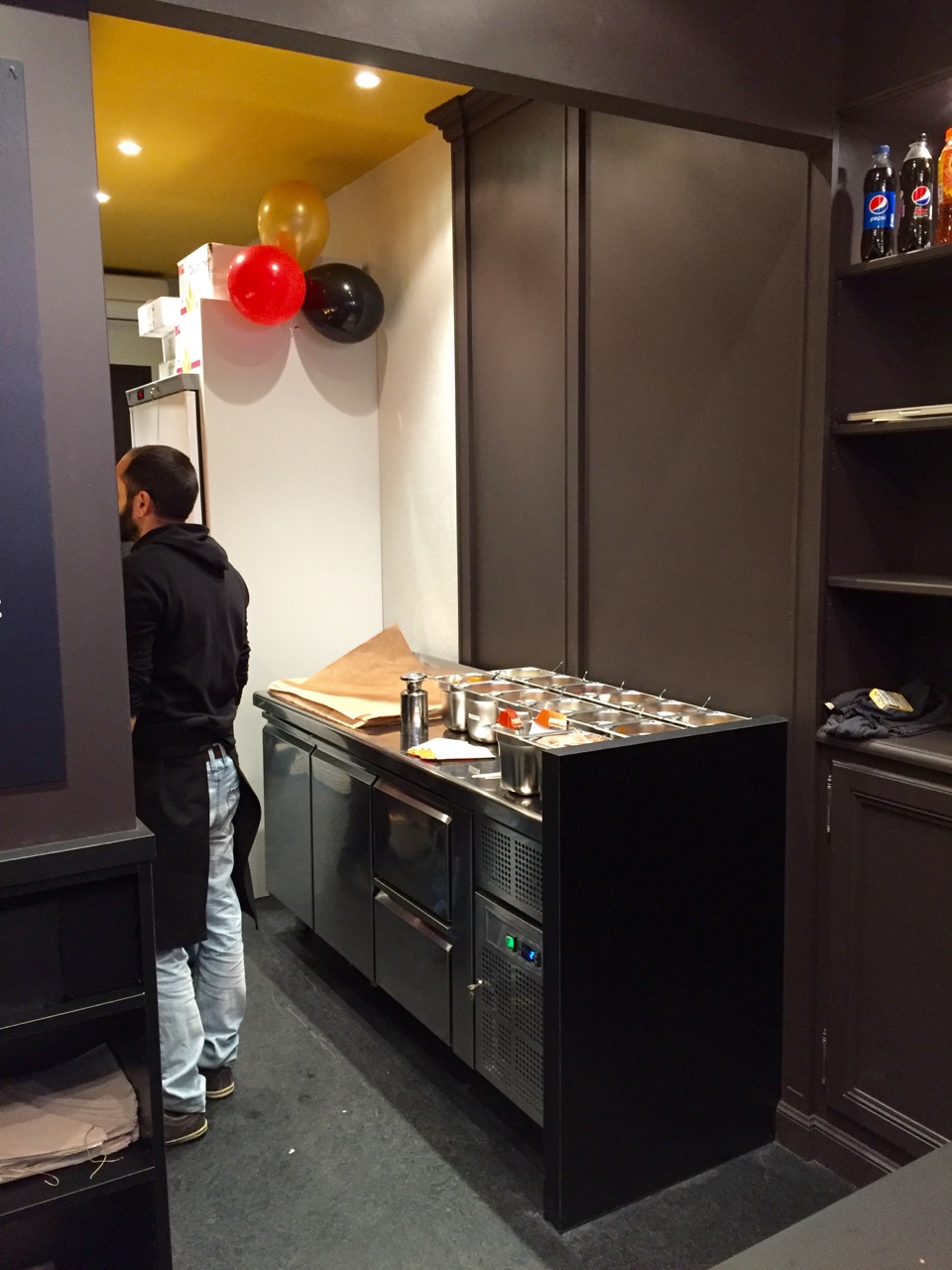 Je regrette un peu le manque de places de la boutique et le fait qu’on puisse pas manger dedans, mais il est clair que c’est un pur produit de streetfood donc… Petit bémol par contre, c’est assez compliqué de se trimballer, la saucisse, les frites, et encore plus les sauces : les emballages définitifs sont pas encore arrivés, j’espère que ça sera plus pratique avec.