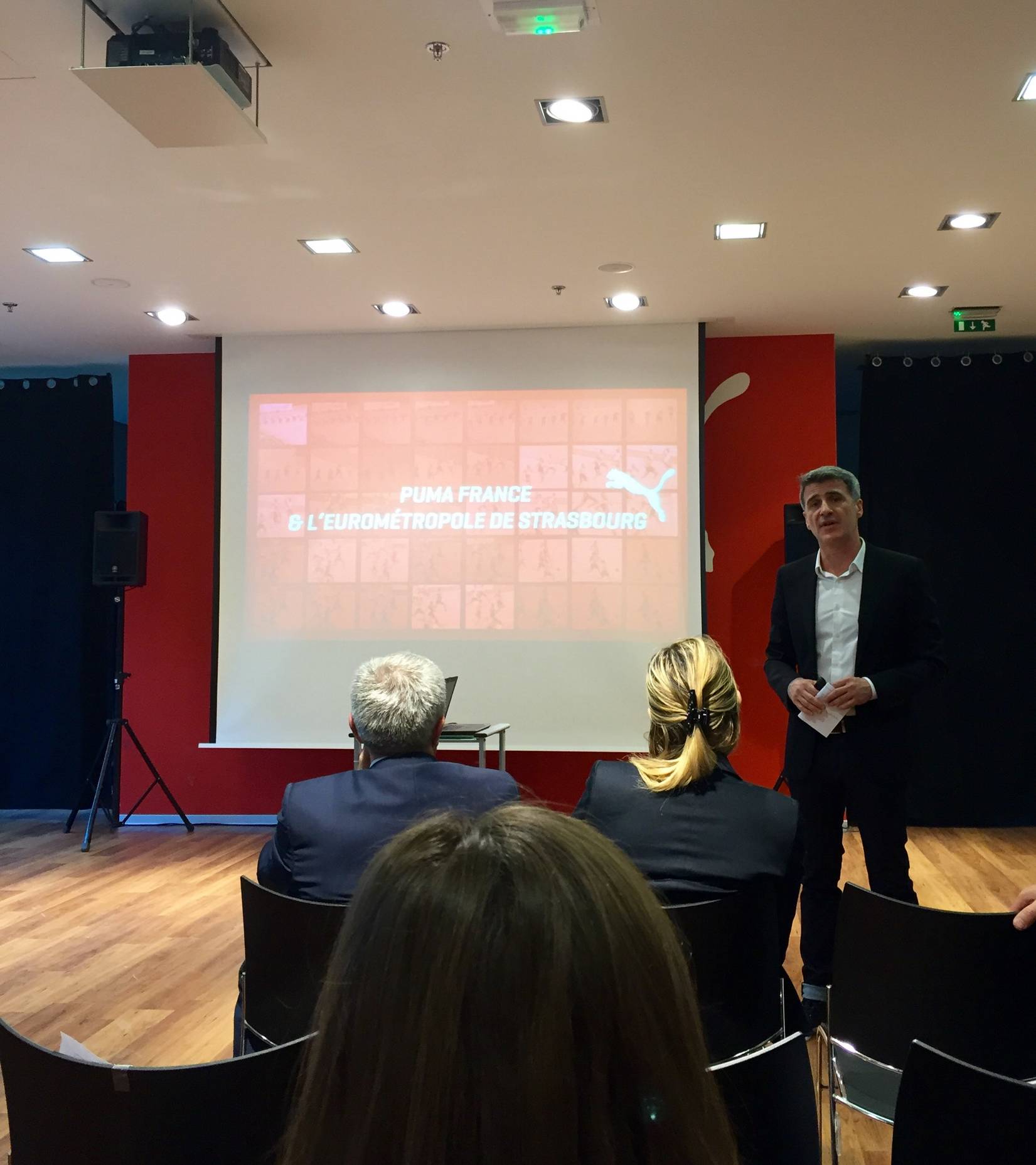 Ensuite, un petite conférence, où Richard Teyssier (Directeur général PUMA France) est revenu sur tous les aspects de la société, y compris la formation, les produits… Avant de passer la main à deux de ses collègues qui ont pu nous raconter leurs parcours professionnels chez PUMA. En guise de conclusions, les interventions de Robert Hermann et de Jean-Luc Heimburger qui soulignaient tous les deux l’importance d’avoir une société de cette ampleur dans la communauté urbaine de Strasbourg.