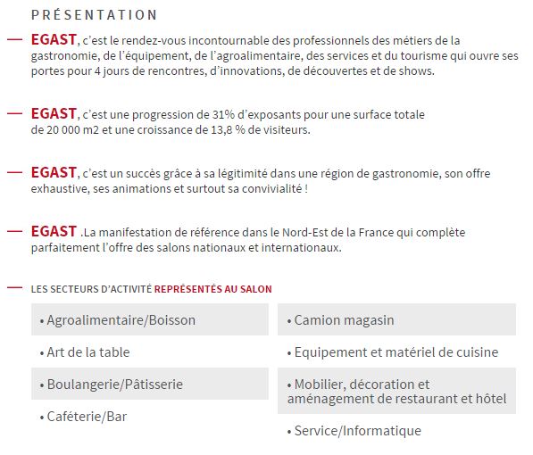 Pour plus de renseignements sur le salon EGAST : www.egast.fr