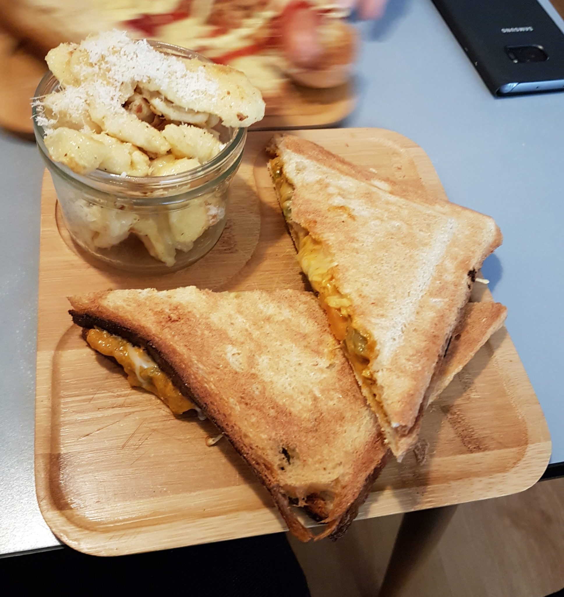 J’y suis à peine retourné ce midi pour un repas rapide. 12h40, le restaurant était quasi plein, l’ambiance était cool, assez calme. Il faisait un peu froid (ça vient du local, je suis bien placé pour le savoir !). Sinon, j’ai commandé un croque monsieur au poulet massala et des spaetzle au parmesan avec un thé glacé, ma convive pour le repas avec opté pour le hot dog : c’est bon, correct, rien à signaler de particulier, juste le service un peu lent… Je suis plus convaincu que la première fois, je pense que je reviendrai, car c’est calme et pas très cher. Par contre, le thé glacé maison était pas bon : trop infusé et trop dilué.