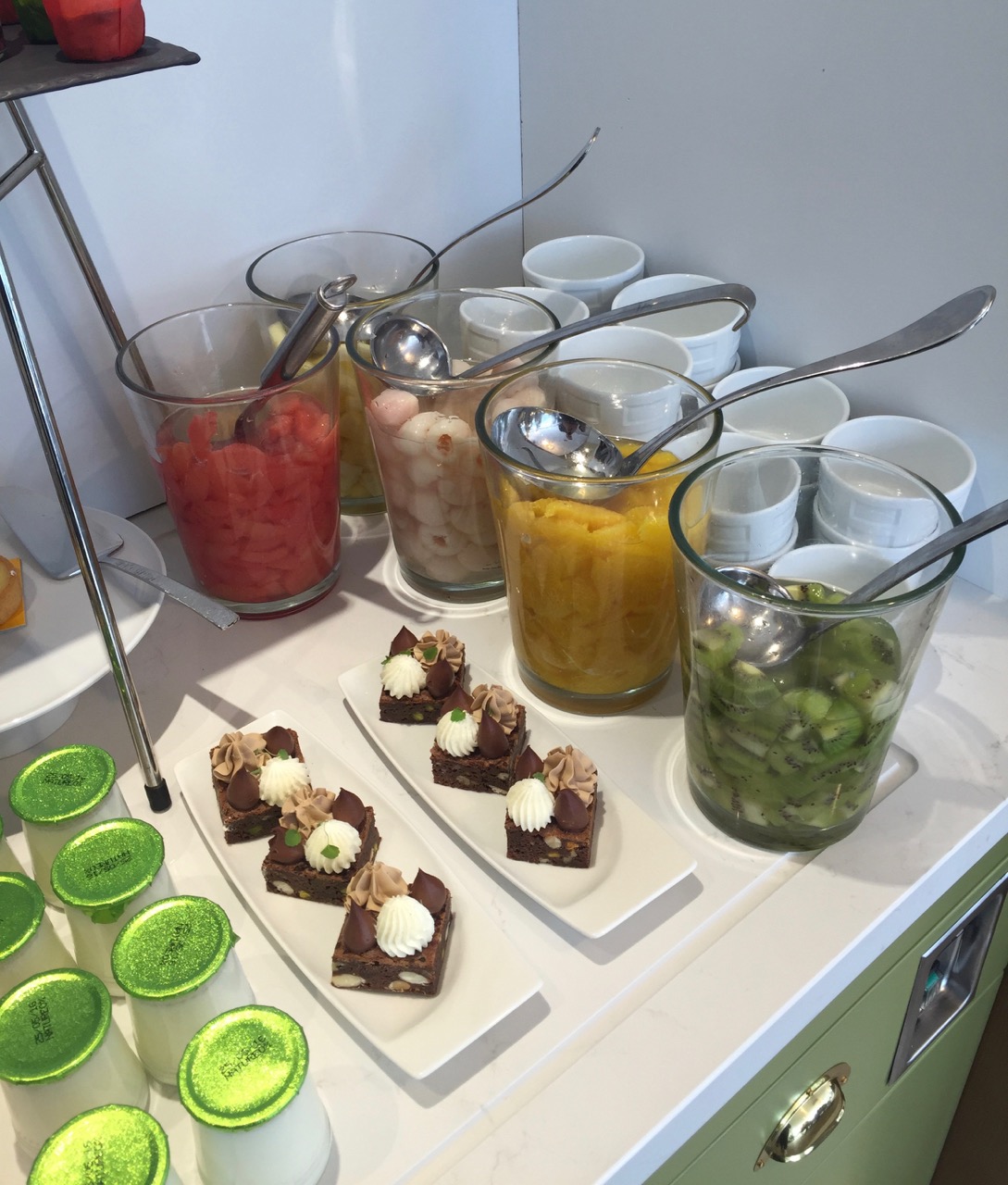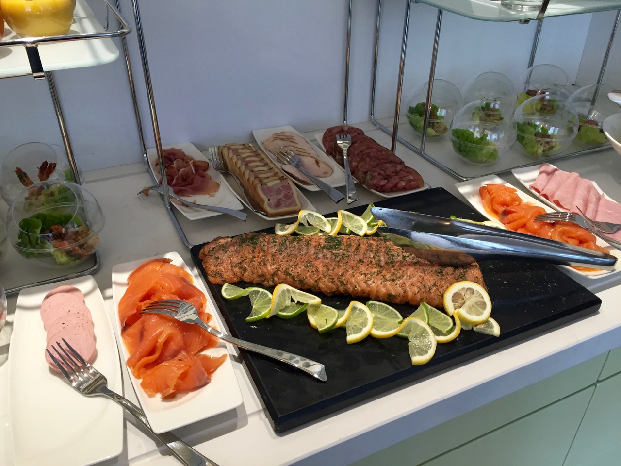 Une petite musique d’ambiance, et hop, on va découvrir les buffets : il est clair dans ce brunch que le but n’est pas de vous offrir de la quantité mais plutôt de la qualité. Les saveurs sont justes, tout est bien assaisonné et les produits fins et frais. Je décline la proposition de la serveuse de boire un verre d’apéritif car j’en suis encore au chocolat chaud et croissant mais je trouve que l’attention est louable ! 😉
