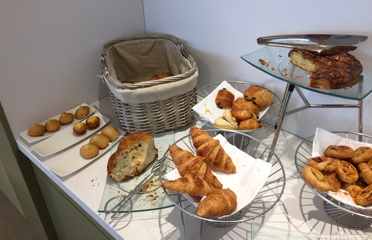 Il s’agit quasiment d’un vrai repas puisque tous les mets (salés, sucrés, pains) sont travaillés avec précision, donc attention de garder de la place pour pouvoir tout gouter ! J’enchaine donc les bouchées en prenant mon temps pour finir par l’atelier fromage du jour : des fromages originaux car peu communs, dont l’histoire est expliqué par une des serveuses qui nous confie aussi qu’elle a été formée spécialement pour l’occasion par l’équipe de la Cloche à Fromage pour la découpe et la connaissance de ces produits. Pour finir, je savoure une tarte à la rhubarbe à tomber par terre, avec mon jus d’orange pressé. Parfait.