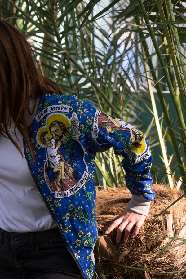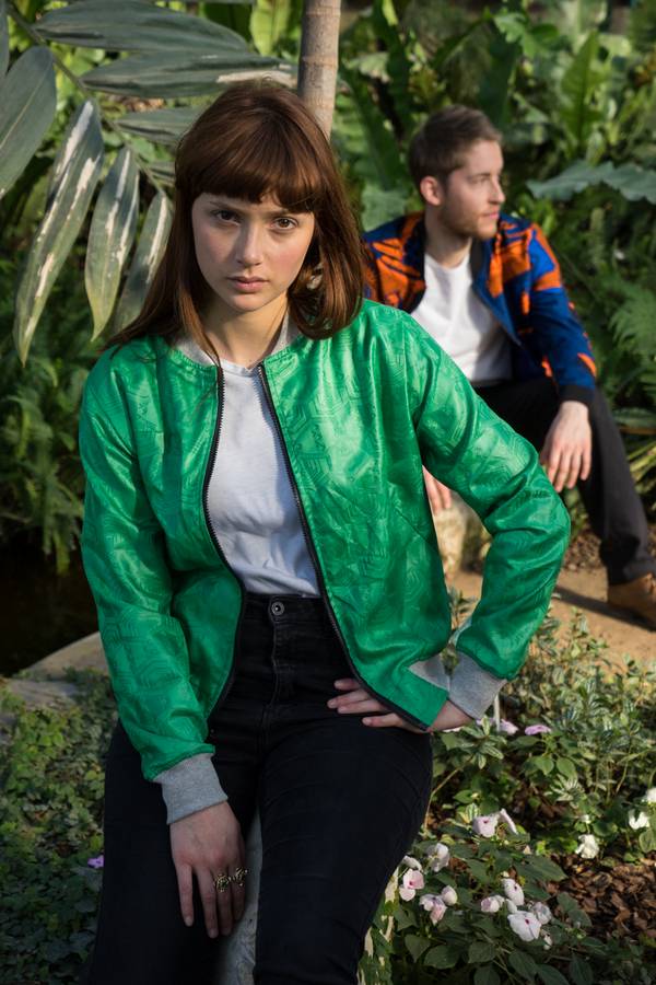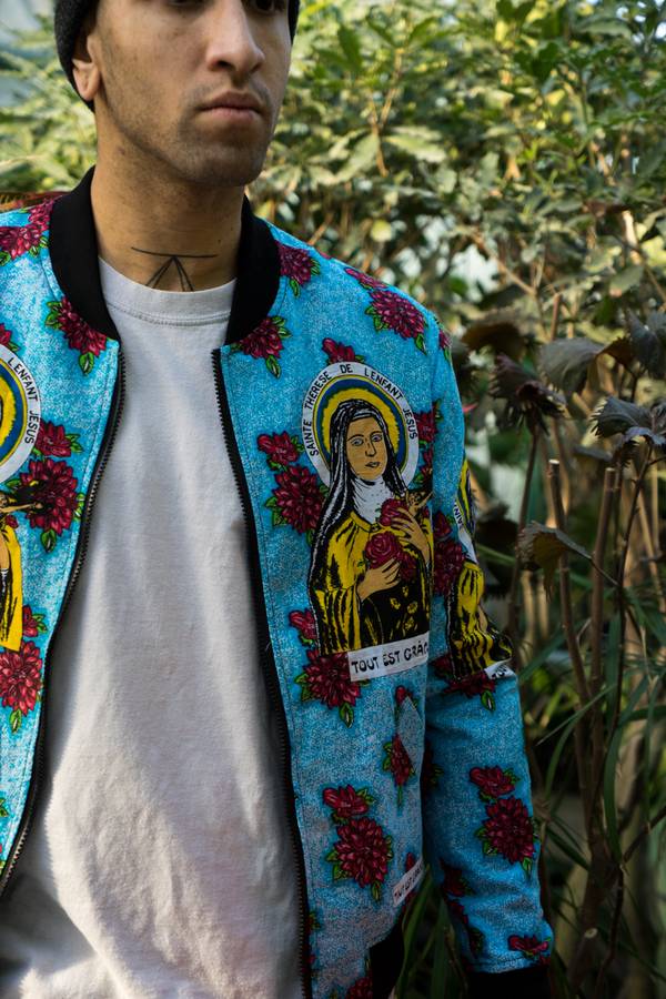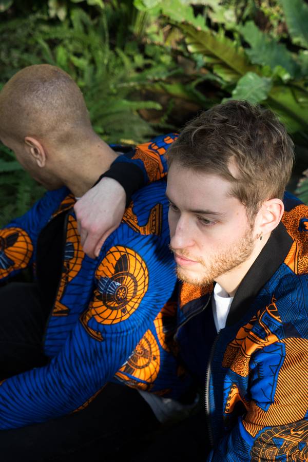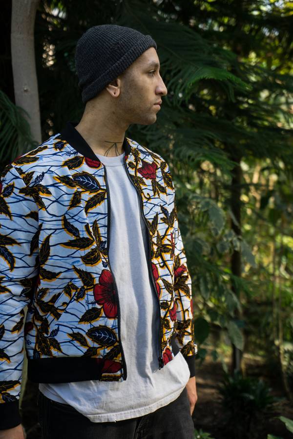 En 2015, Simon se rend à Ziguinchor pour réaliser une fresque avec l’association. Il est surpris par la multitude de tailleurs et de tissus sur les marchés. En revenant en France, il imagine alors avec Astrid, également membre du collectif Genkidama, des vestes et des ensembles combinant tissus africains et coupes européennes.