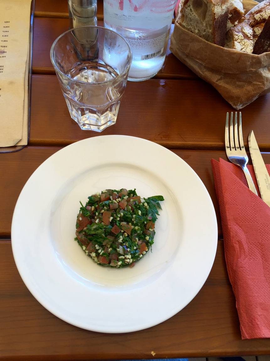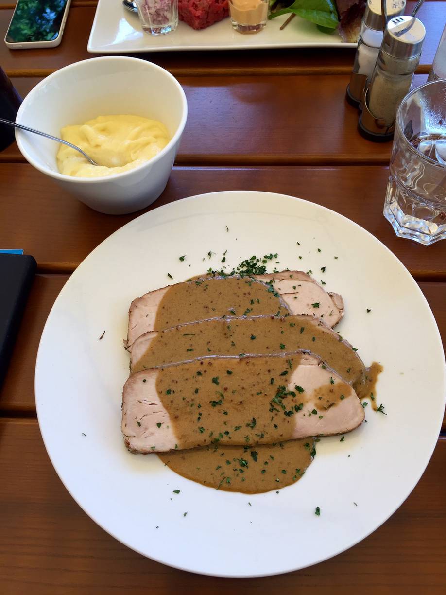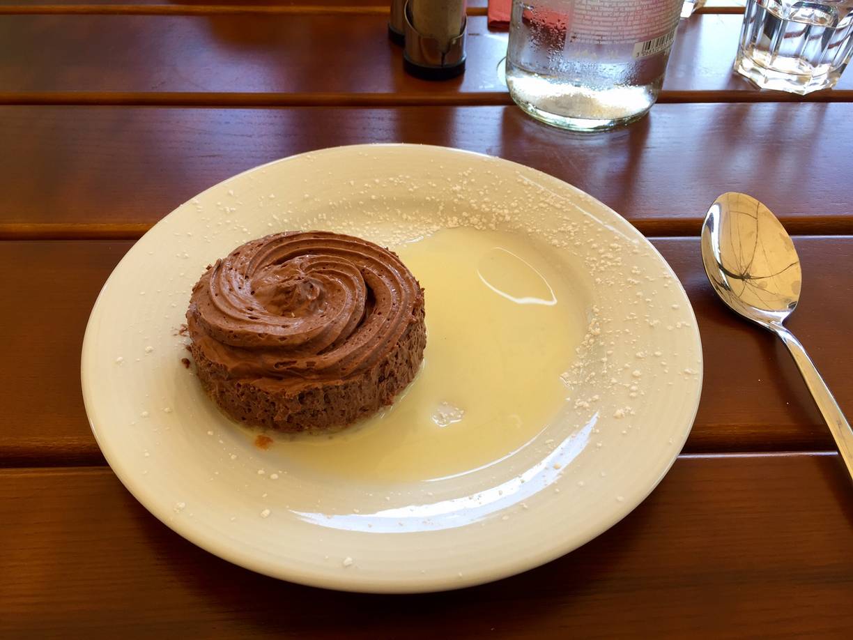Au niveau du repas, je suis parti sur la formule entrée plat dessert pour 13,50 € : Taboulé libanais, Noix de jambon de cochon rôtie, sauce moutarde à l’ancienne et pommes purée pour finir avec une mousse au chocolat noir. C’était copieux, de qualité, la purée top et le dessert bien réalisé et pas trop lourd : rien à redire.