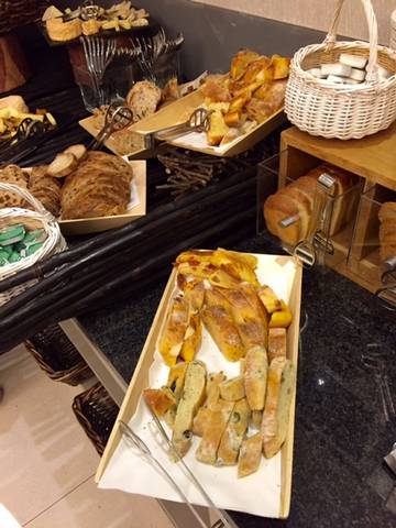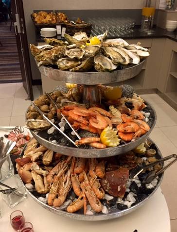 Au niveau des buffets, il y en effet du choix : céréales, pains divers et variés, salades de crudités en tous genres, charcuteries, et surtout un énorme plateau de fruits de mer (crevettes, huitres…). Puis à l’extérieur, un barbecue à grillades et un bar à smoothies faits devant nous avec un large choix de fruits : de quoi tester des bons mélanges de fruits frais : EXCELLENT !