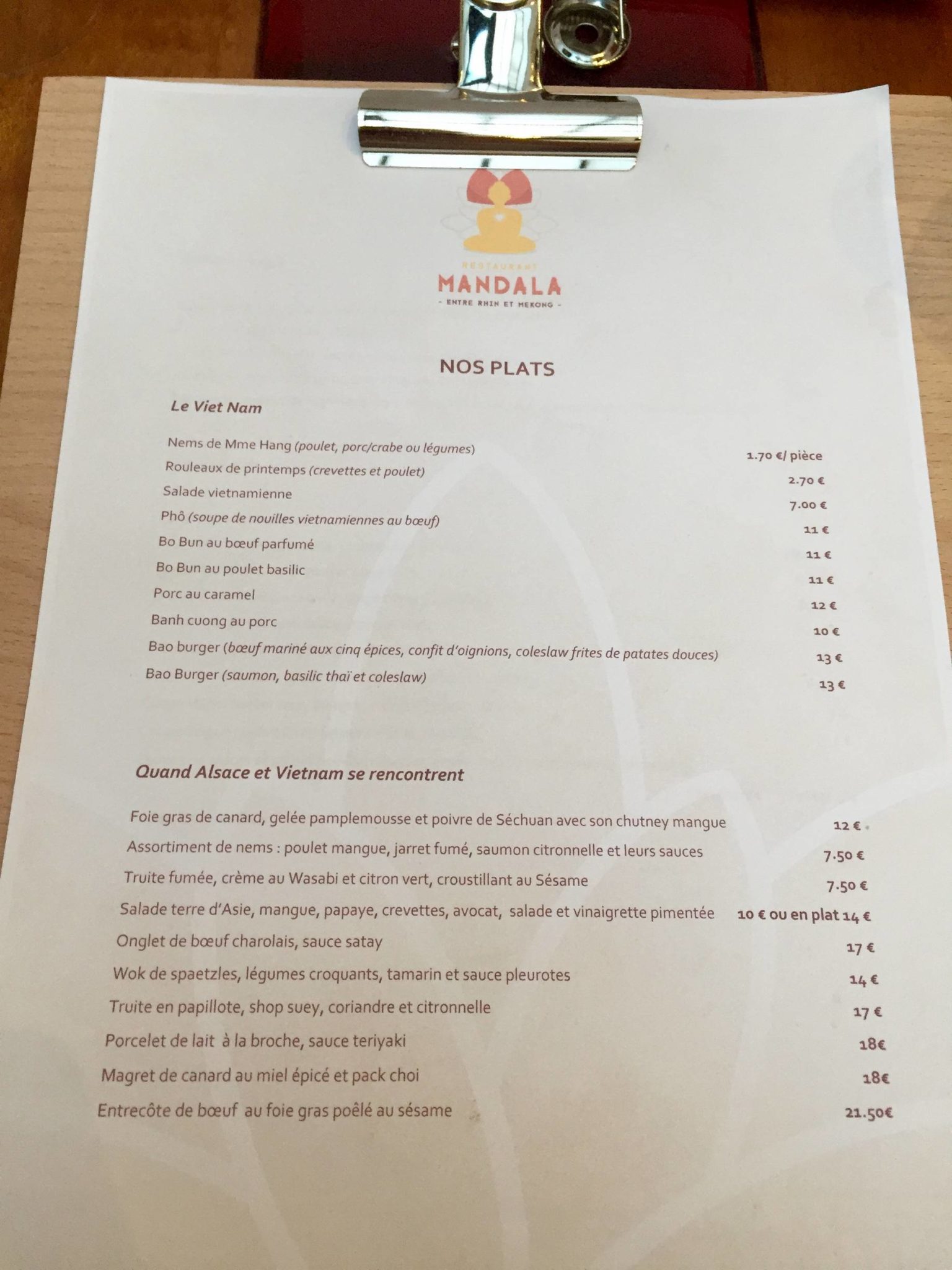 Son concept se décline en 2 lieux : le premier, le « Mandala Express » propose des sandwichs, spécialités viet ou encore nems et desserts à emporter à des tarifs très abordables. Le second, le « Mandala Caphé » est un vrai restaurant qui se concentre une carte plus « terroir » vietnamienne tout en alliant des saveurs alsaciennes. Le chef propose aussi des plats végétariens et des suggestions au jour le jour.