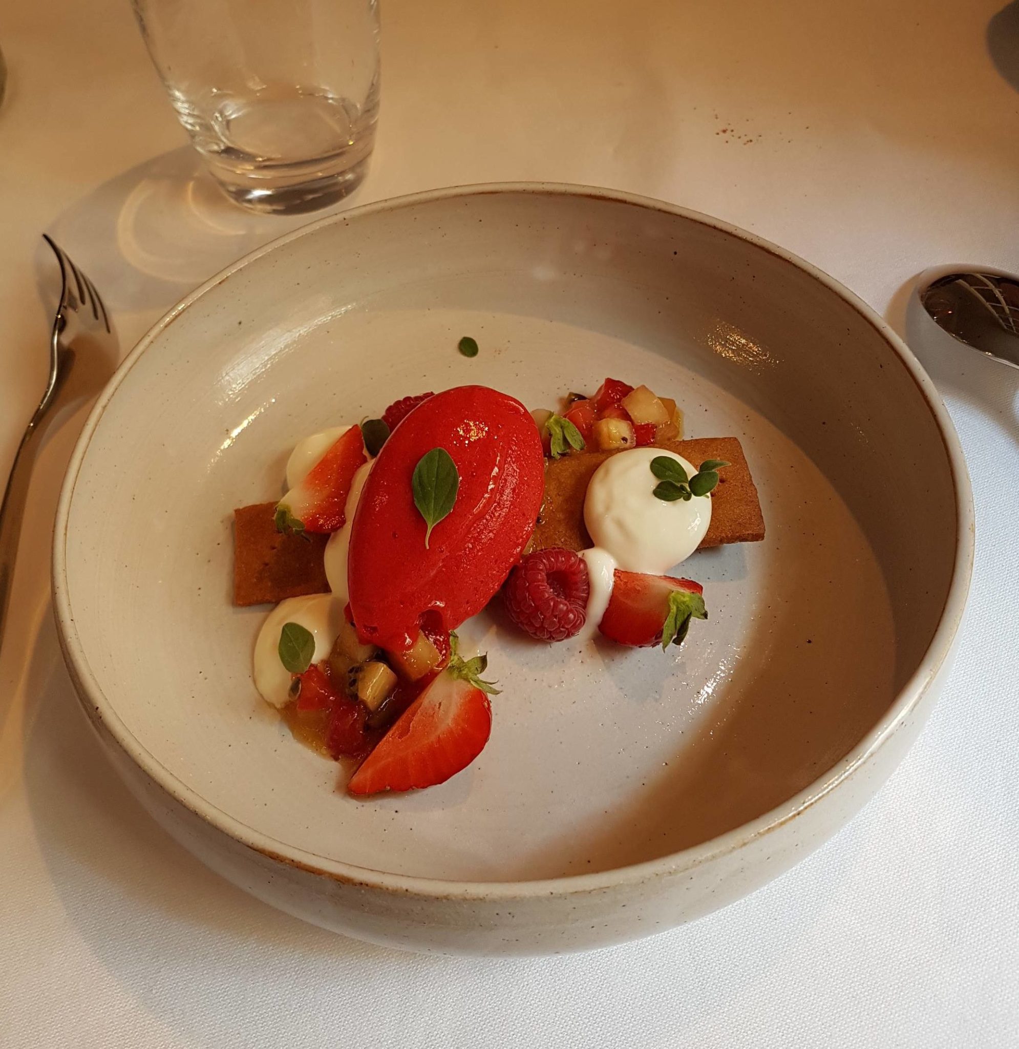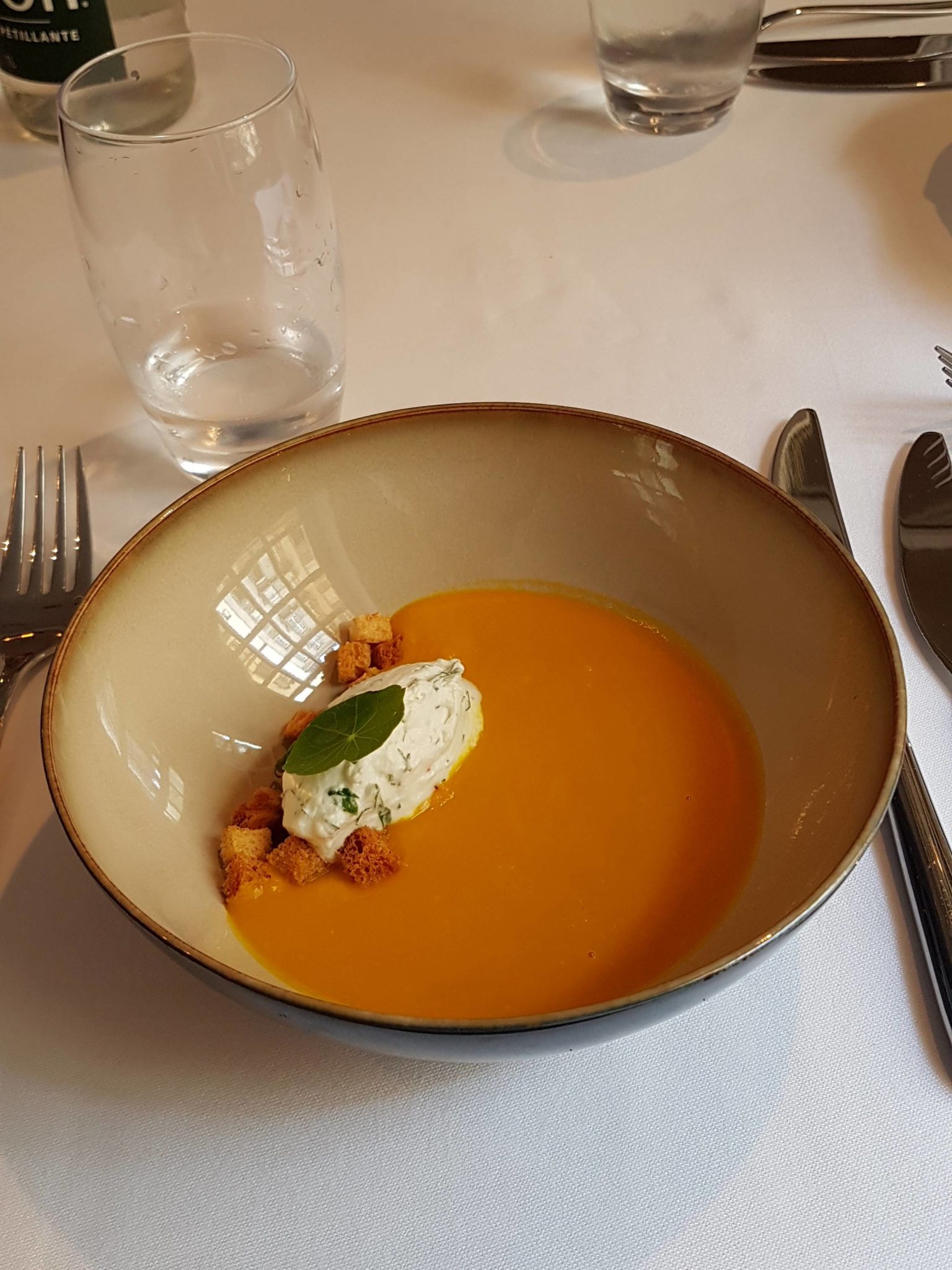 J’ai pris le velouté de potimarron, la pièce de veau et la mousse de fromage frais-ricotta… Je me suis régalé, les plats étaient bien cuisinés, les quantités sont petites mais suffisantes. Juste un petit manque de sel à mon gout et de cuisson pour le veau, je l’aurai aimé un tout petit peu plus rosé…
