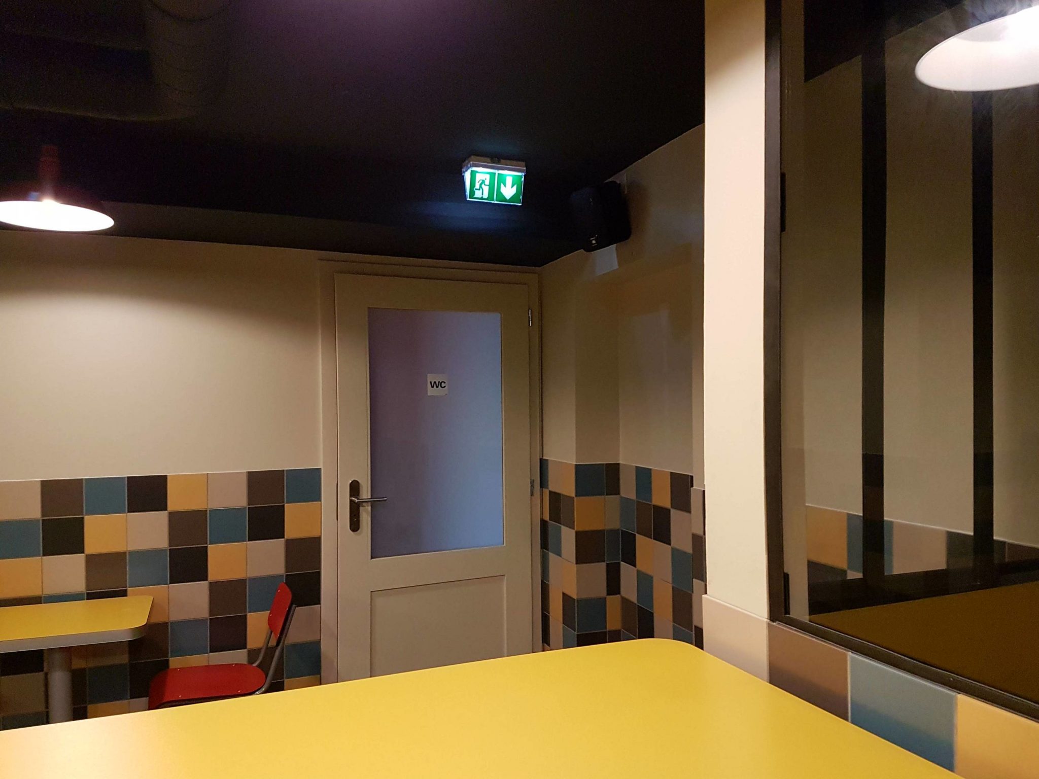 Salle du fond étriquée voir étouffante, sombre avec des WC sales (pourtant on était en début de service) !