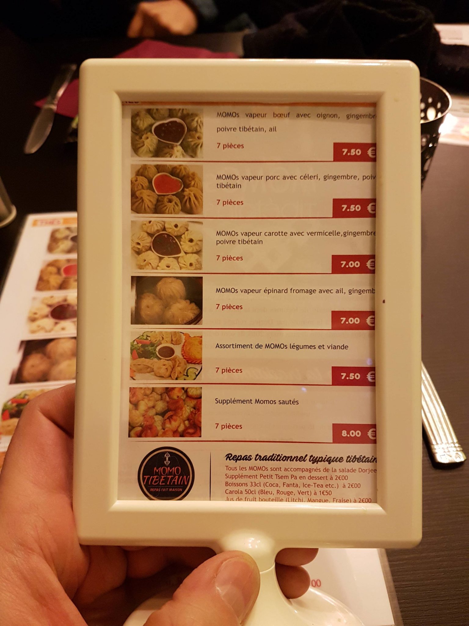 Dans l’ensemble, c’est une vraie belle surprise, même si la carte est uniquement basée sur des raviolis momos, on voyage à l’autre bout du monde et Dorjee est tellement sympathique et souriant que l’on peut qu’adorer l’endroit ! Niveau tarifs, on est à environ 8 euros les 7 momos, très correct.